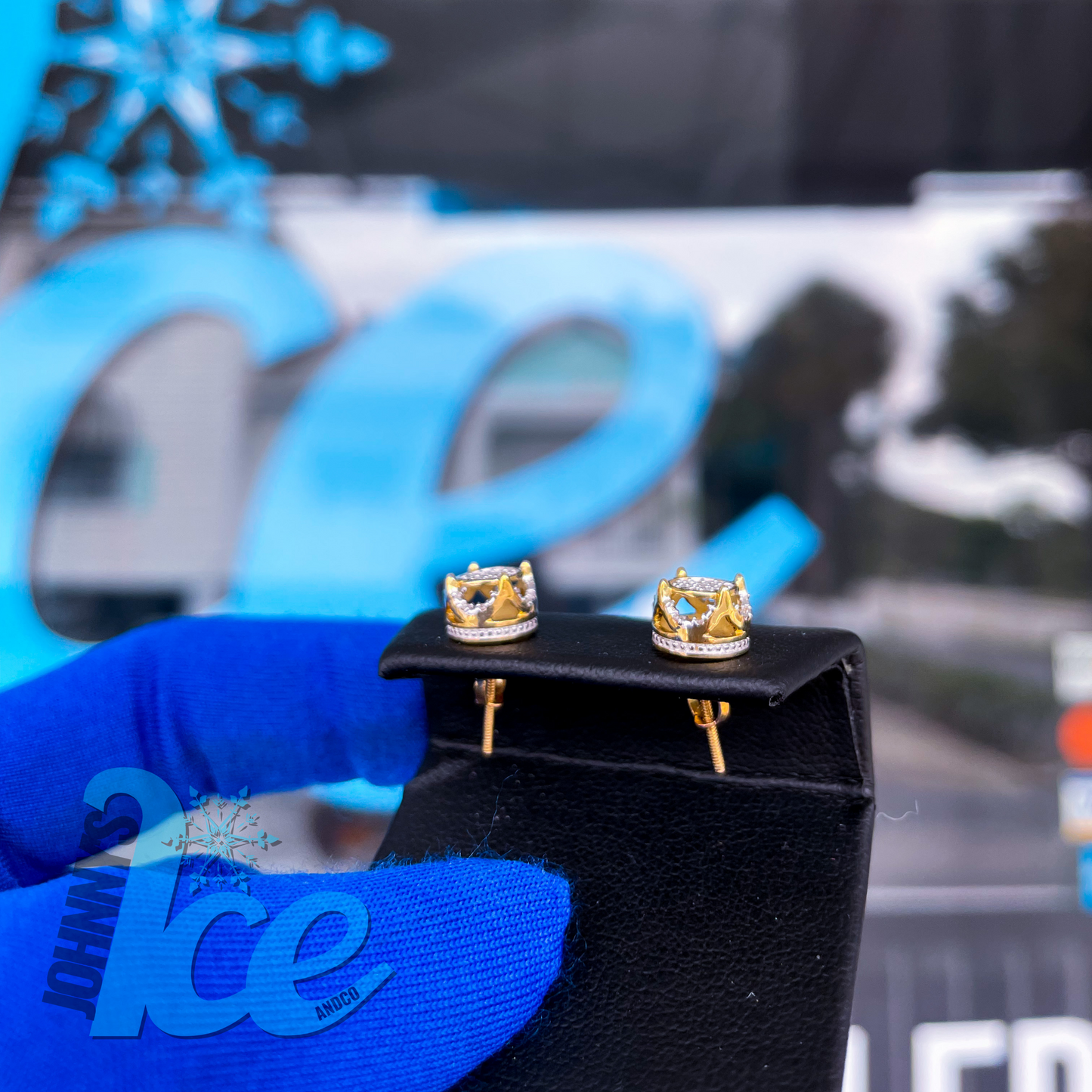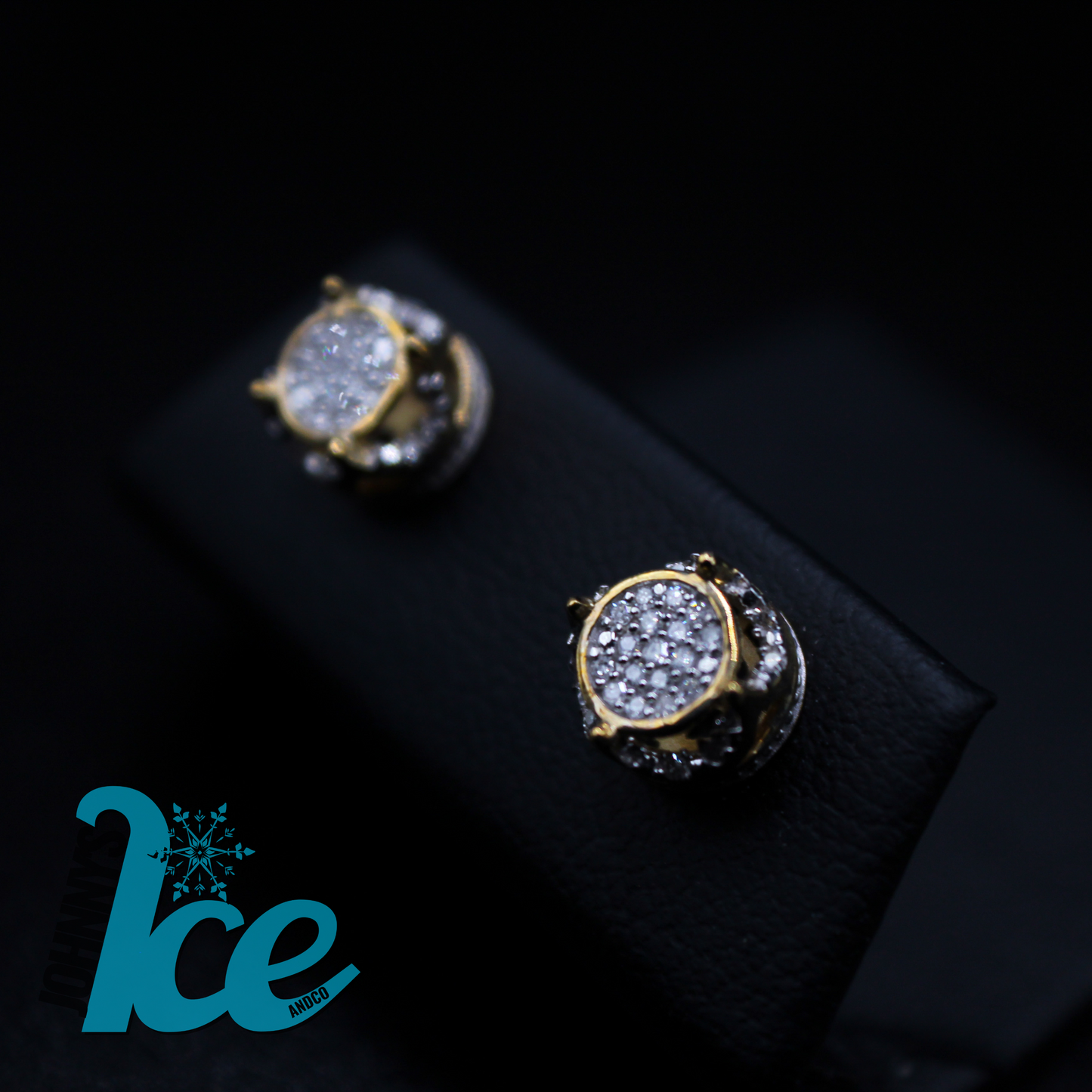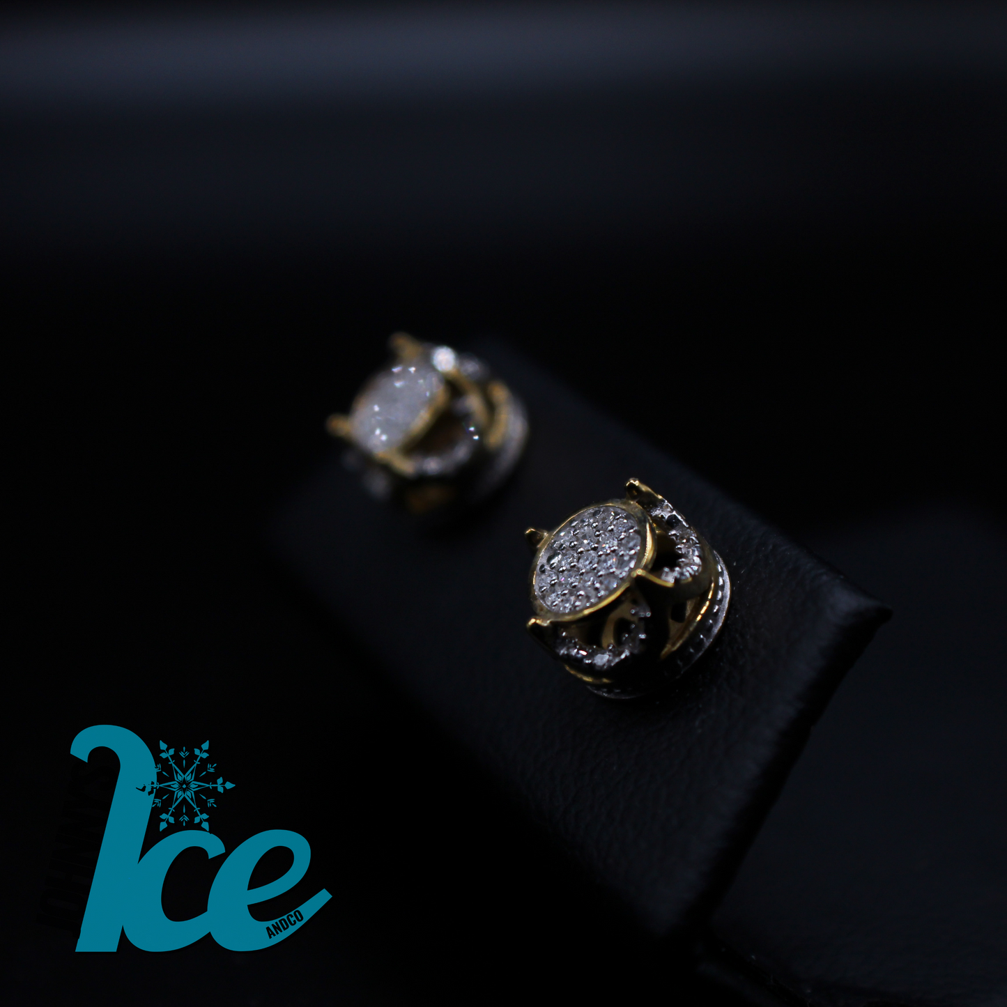 Handcrafted crown-style earrings with a bussdown center of SI2 diamonds directly mined and cut overseas. Made by our Johnny's Ice and Co. jewelers!