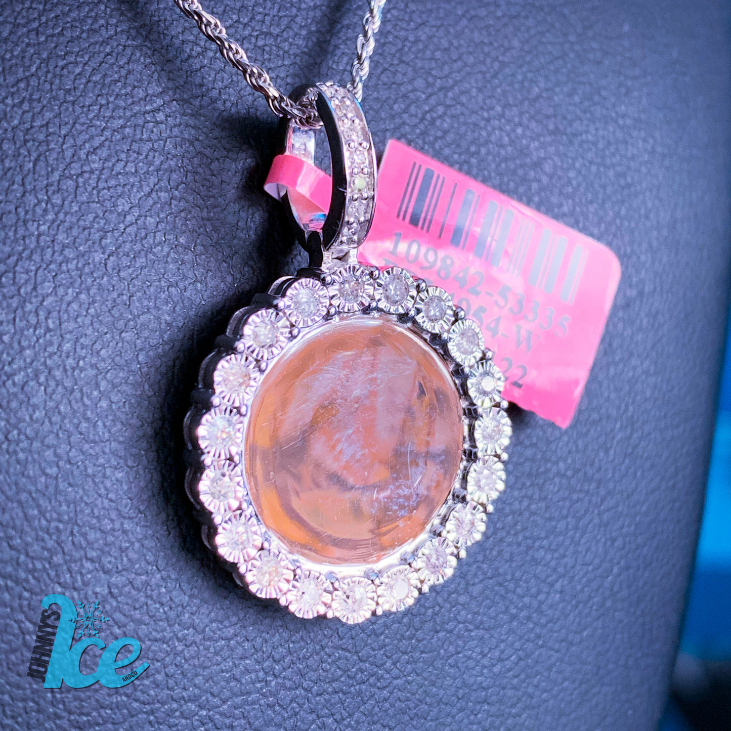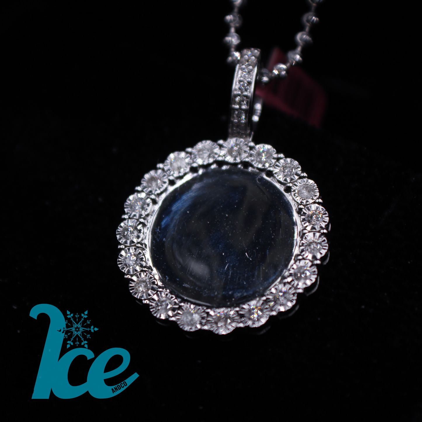 As part of our valentines day collection, JIAC features our charm sized memory pendants. Handset solitaire diamonds all clustered with illusion cut white gold shine around the stones!