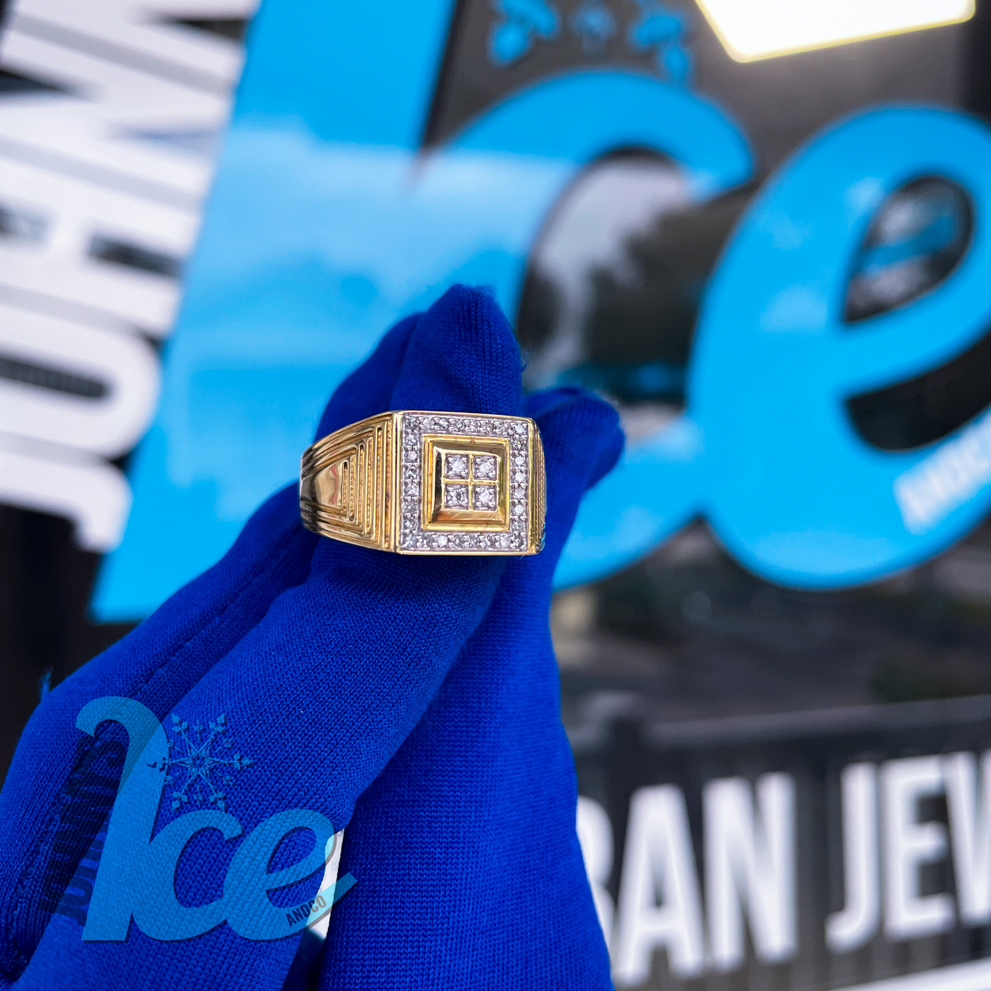 Specially Hand-crafted, 10k Yellow Gold Square Cluster Ring designed by our jewelers @ JIAC.