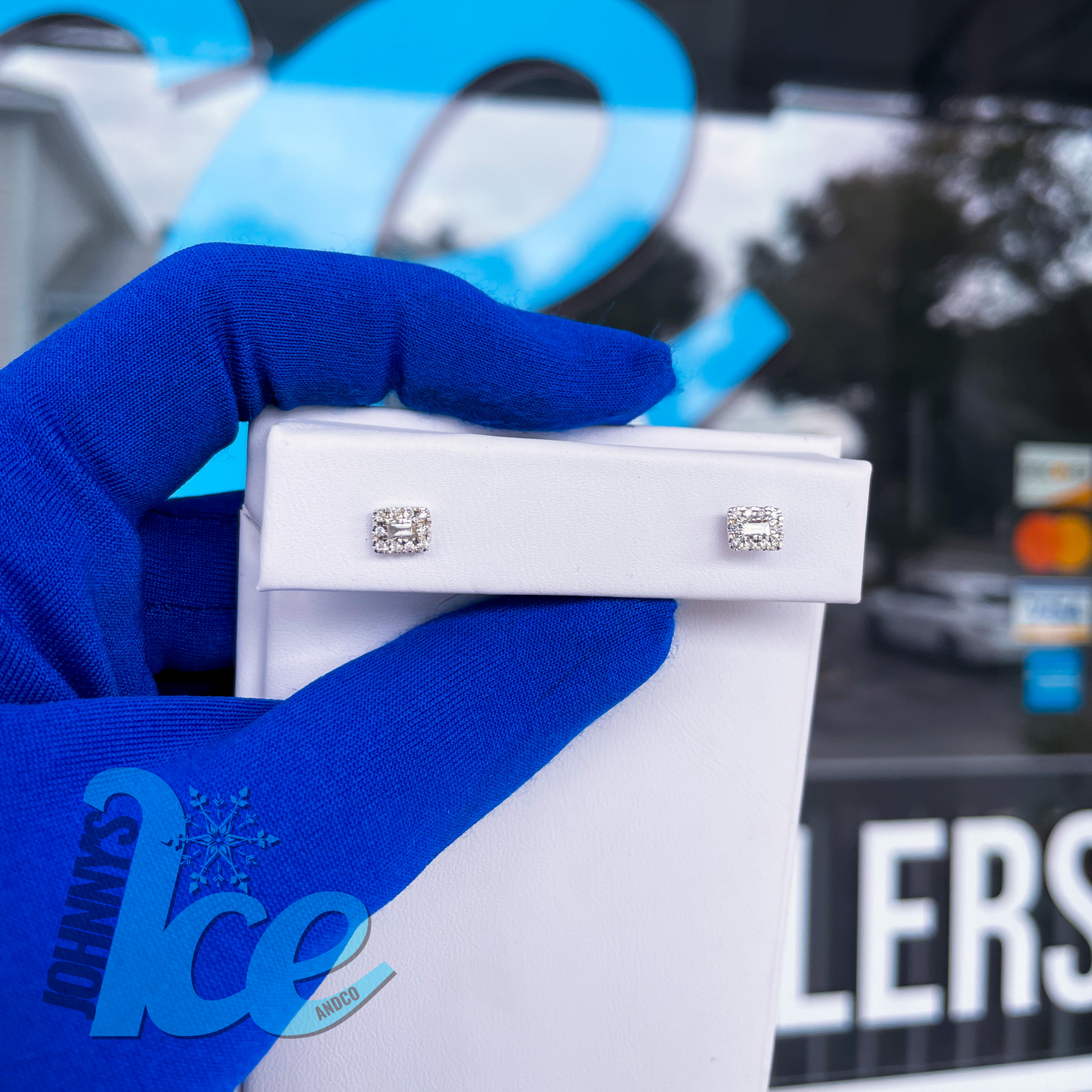 Handcrafted, mini baguette rectangle earrings. Designed in our 3D CAD system, these earrings were made specifically down to the baguette diamonds in the center. Made by our Johnny's Ice and Co. jewelers!