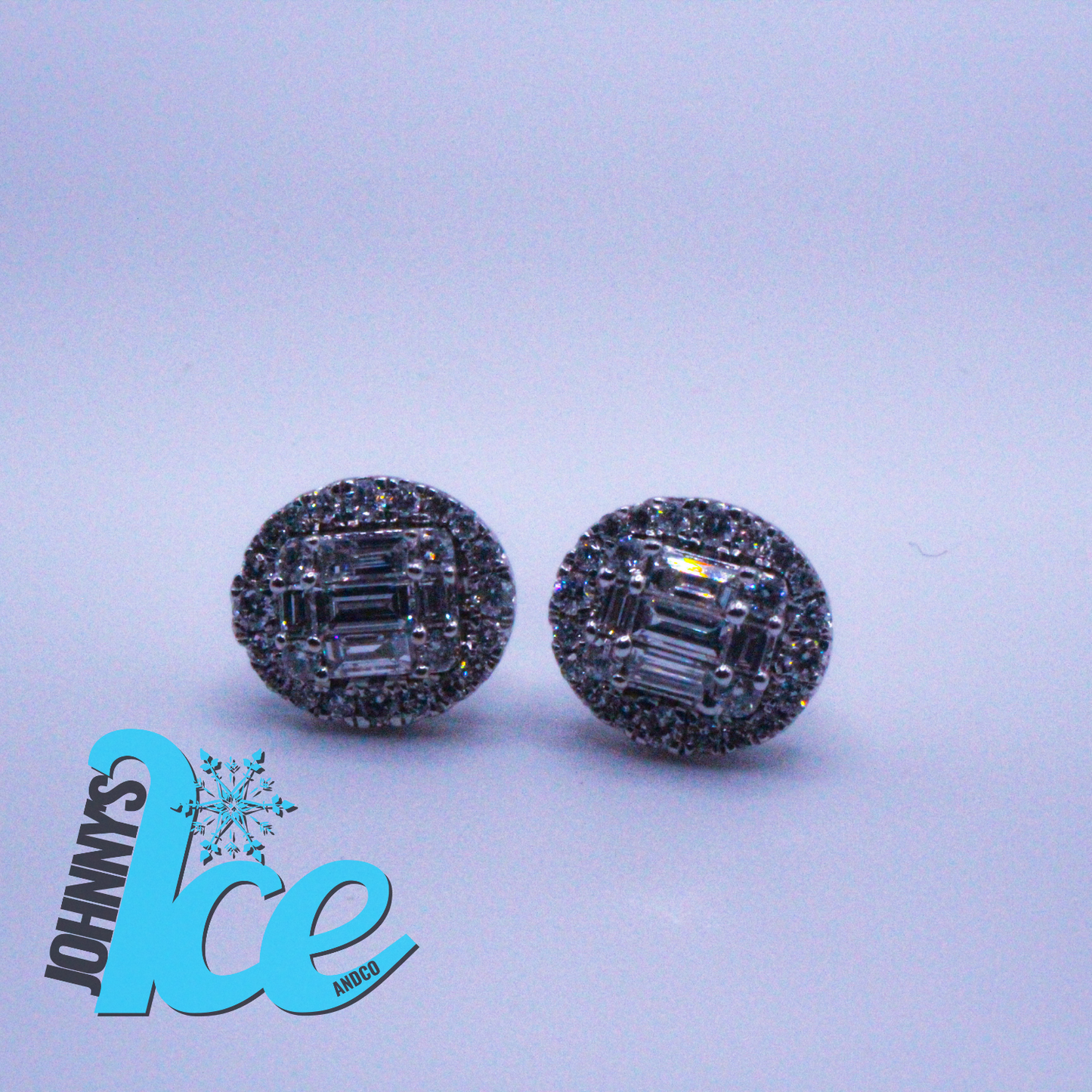 Regular price $2,950.00Specially crafted, 1 of 1, Baguette Oval Diamond earrings clustered with round cut diamonds. Made by our Johnny's Ice and Co. jewelers!