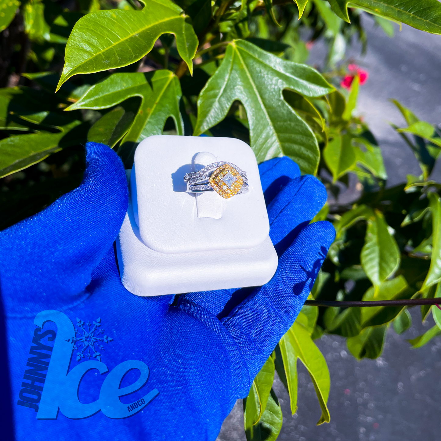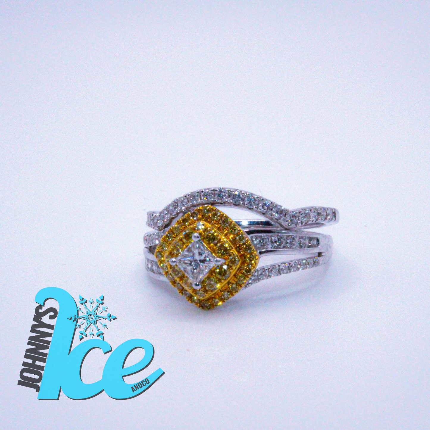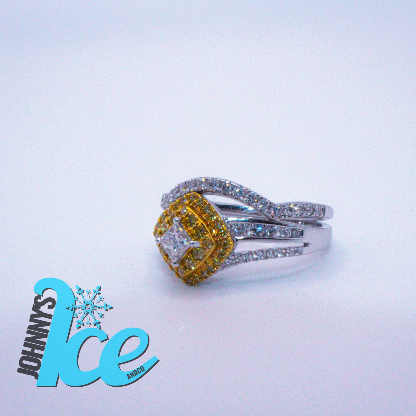 Specially Hand-crafted, 14k Two-Tone White Gold Princess Cut Engagement Set designed by our jewelers @ JIAC.