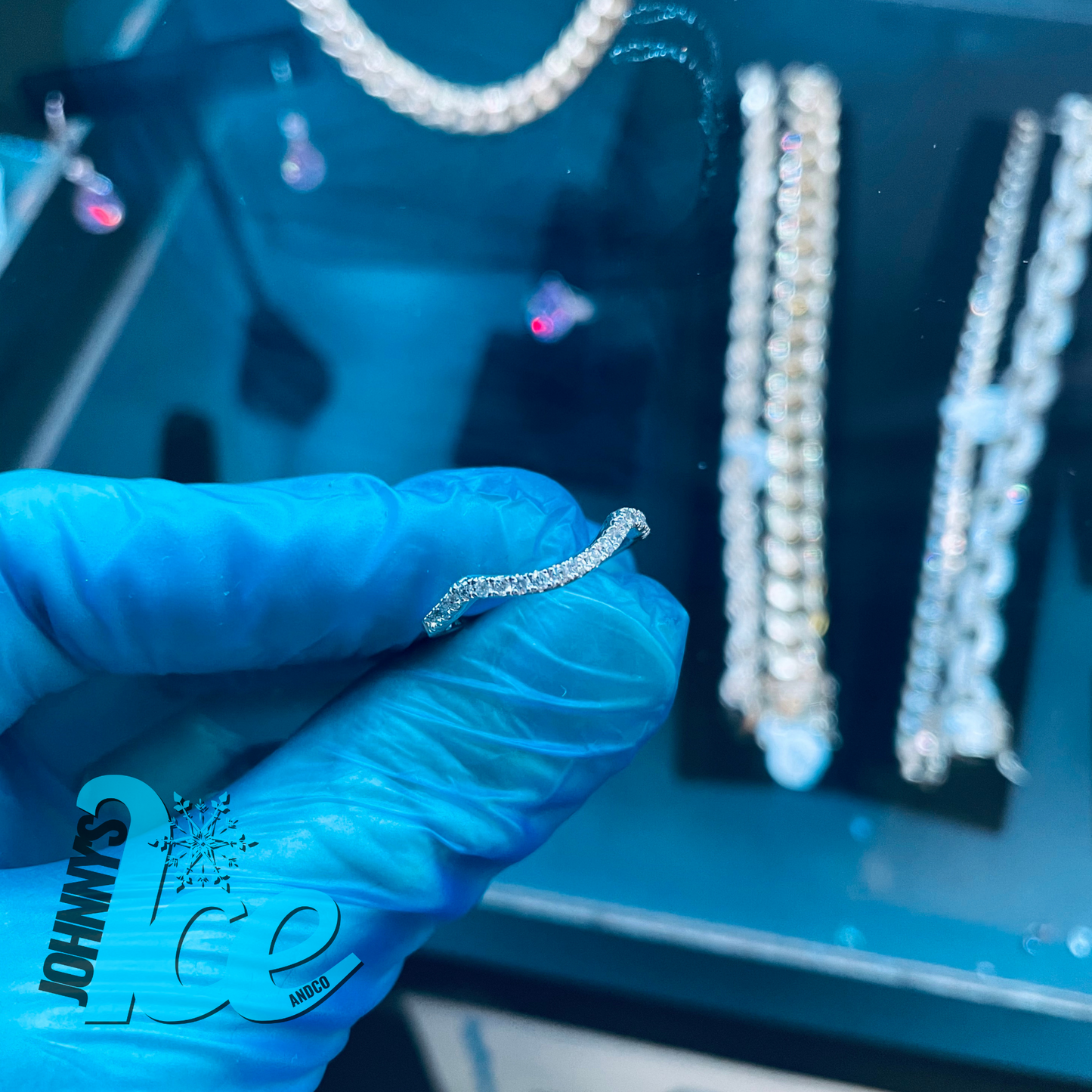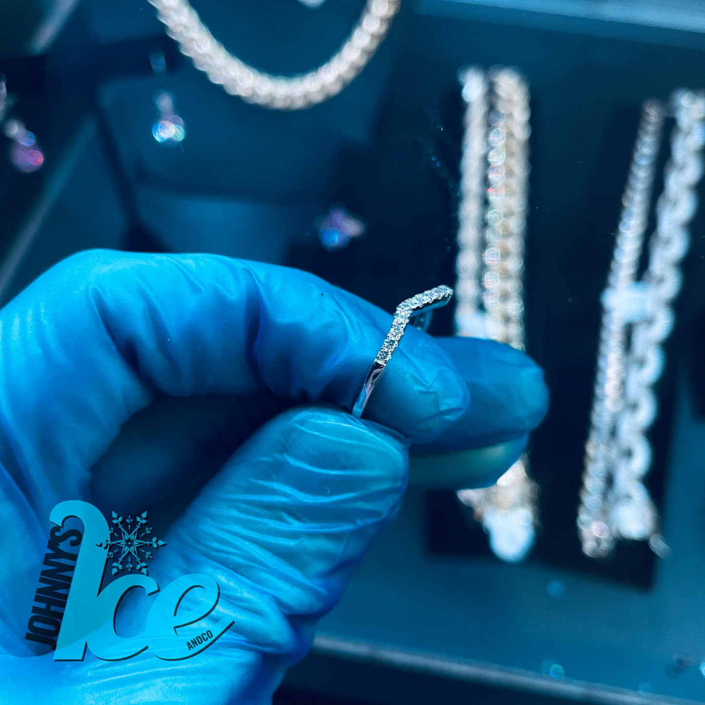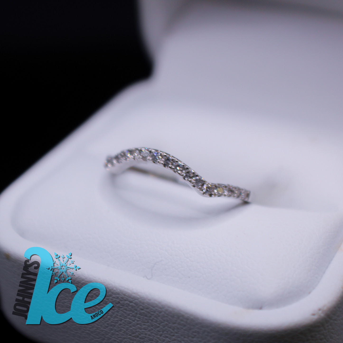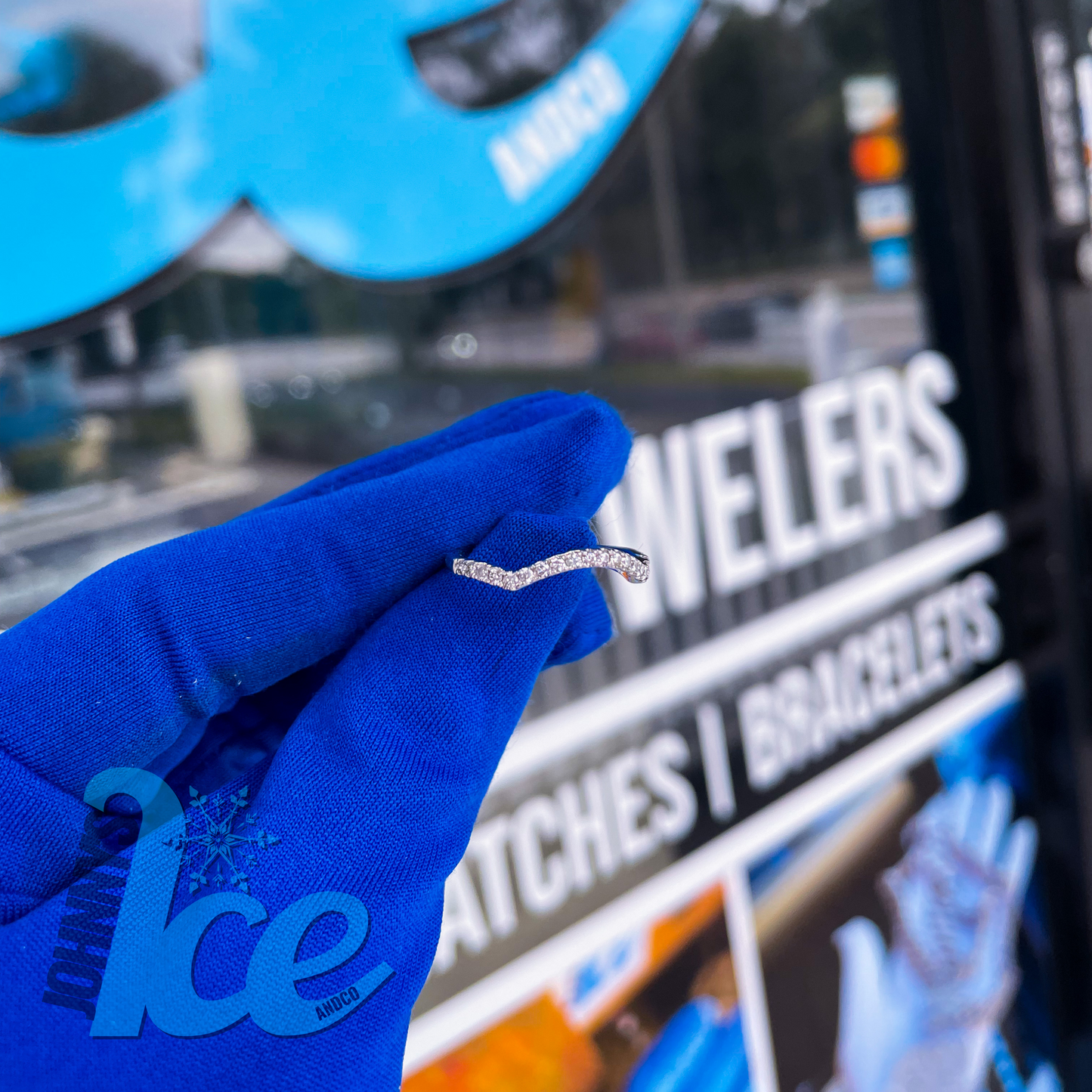Gorgeous hand-set 14k White Gold Engagement Band, perfect to go with any other White Gold Ring in our collection!