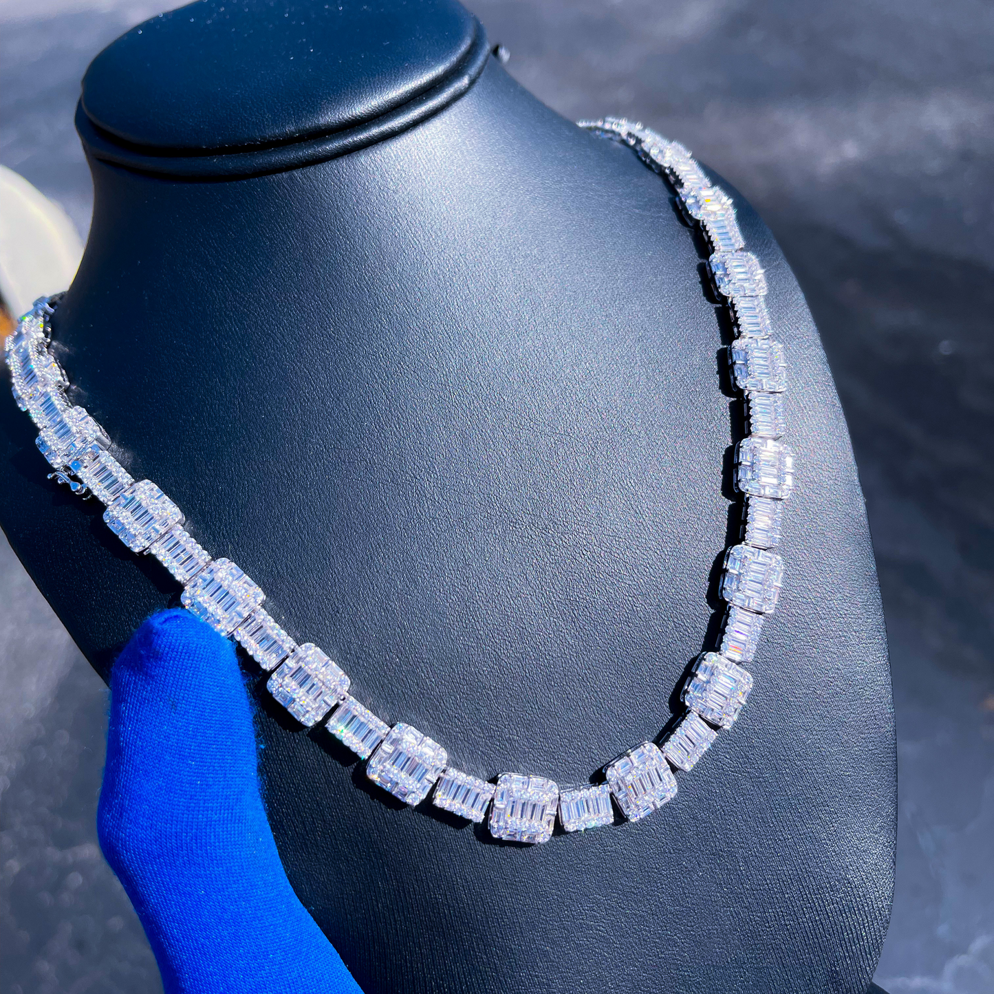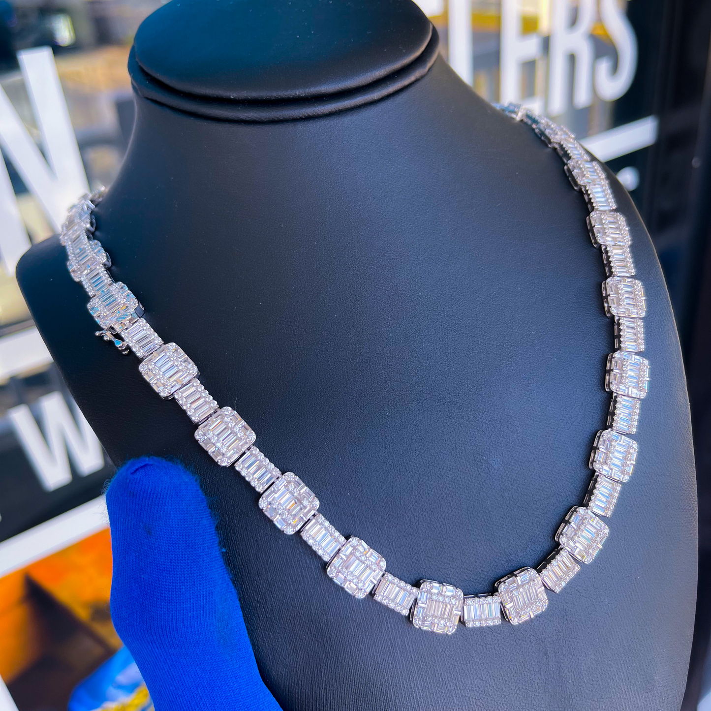 Regular price $450.00JIAC features our one of a kind baguette cluster chain. Casted in .925 Silver and set with SI stones. Please see our grading scale before making purchase. ( si - diamond simulant )