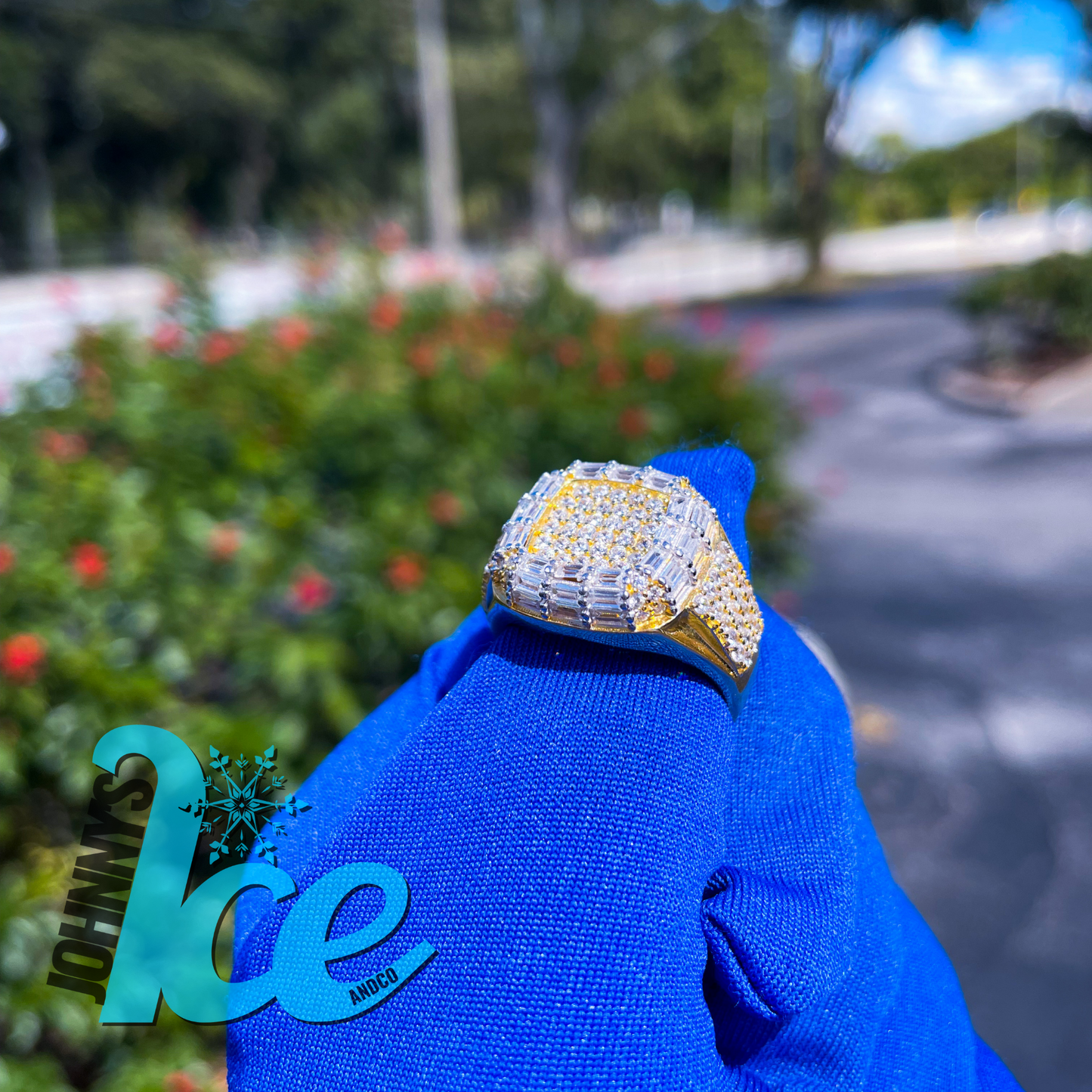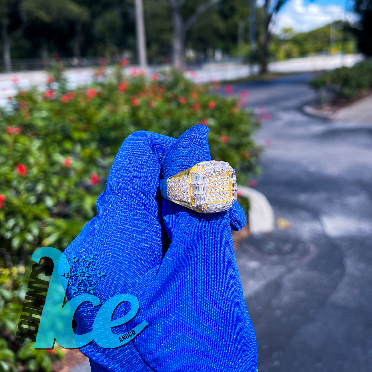 Featured in JIACs new Tampa Restock Order, Features our 3D like Two Toned championship ring. This ring is centered with Round cut diamonds and lined with Emerald cuts with a 3D effect.
