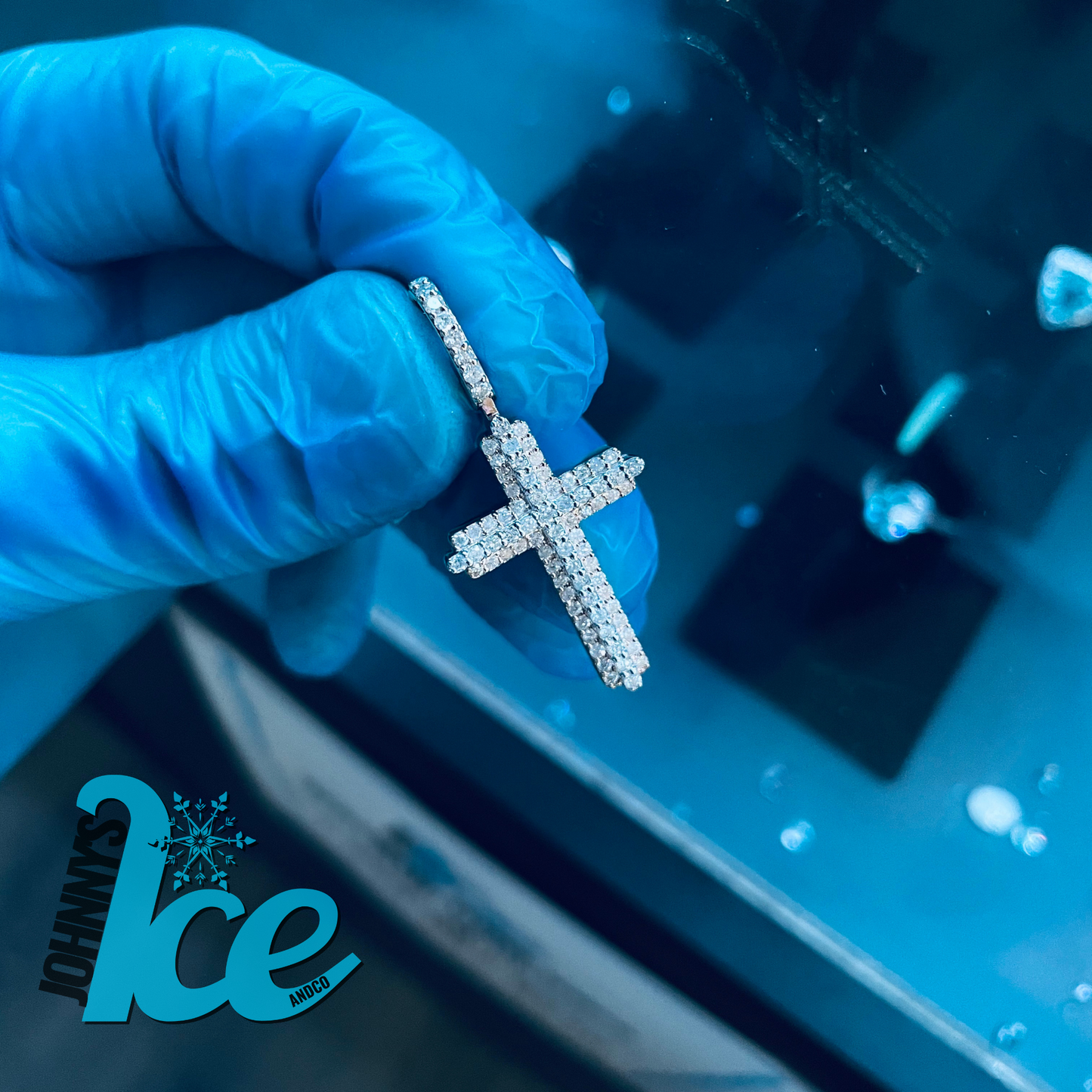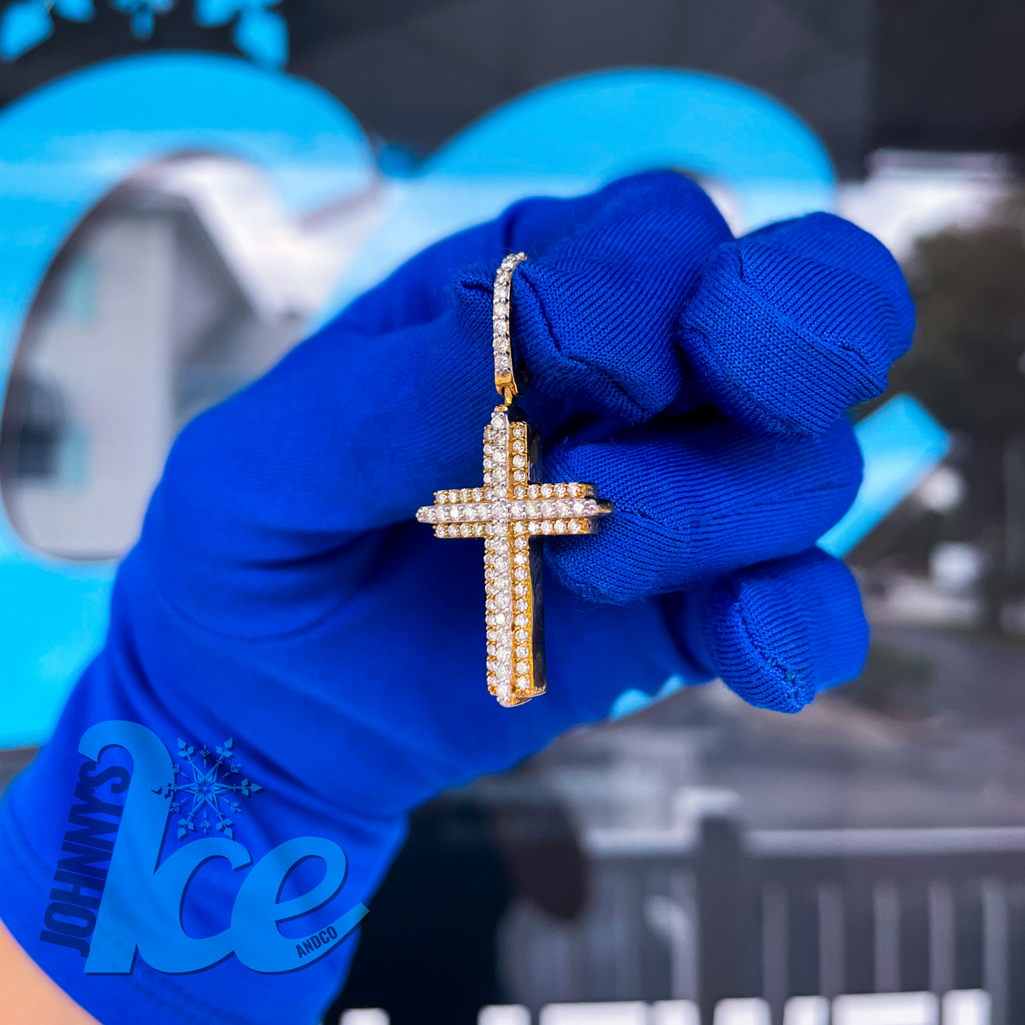 Specially Hand-crafted and one-of-kind-style 2-Layer Diamond Cross, created with a special wax and melted from 14k Yellow Gold, set with VS2 diamonds. Brought to you by our jewelers at JIAC!