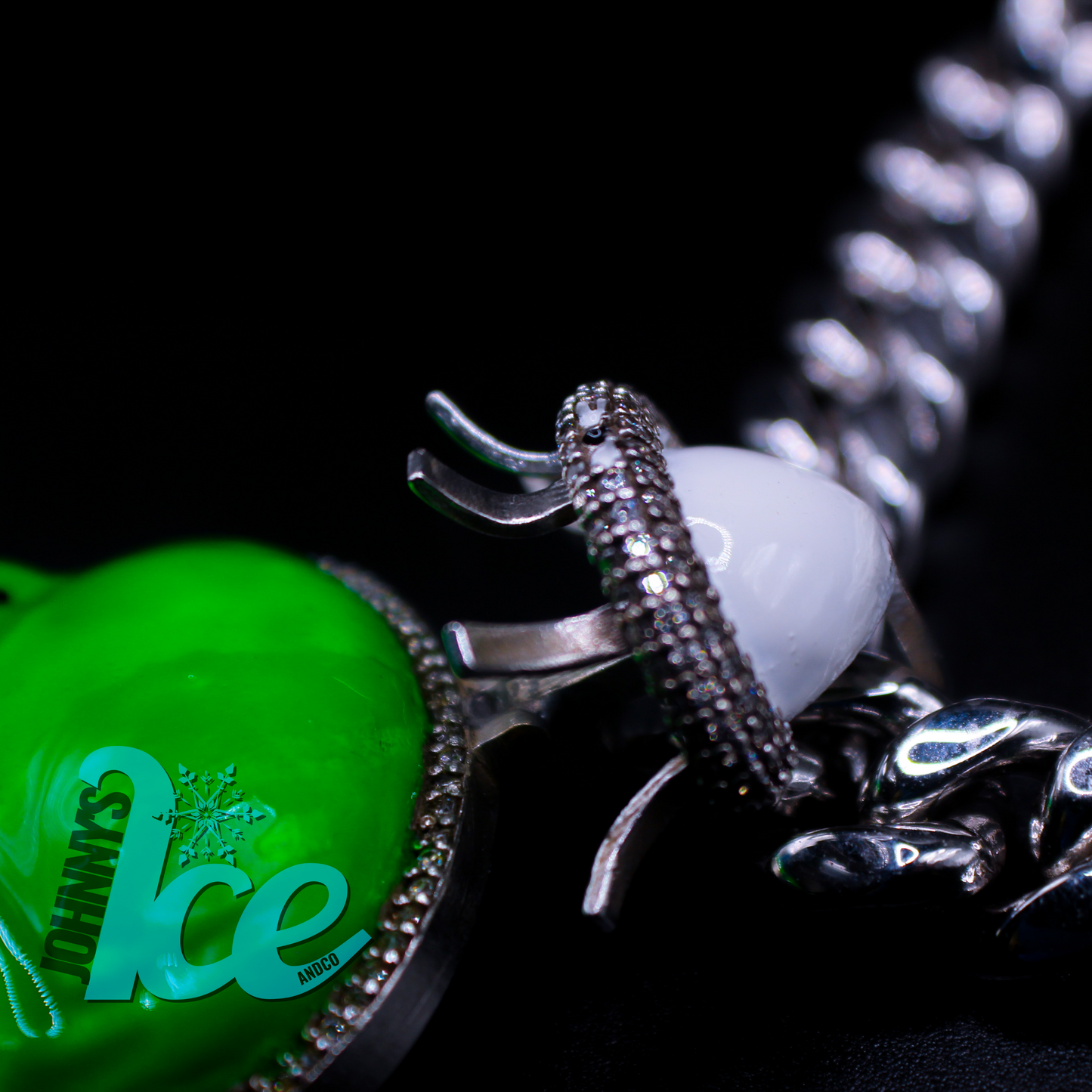 Special Features: UV Glow in the Dark Enamel, Special Diamond Dust Johnnyiceandco logo backing, specialty UFO Bail.