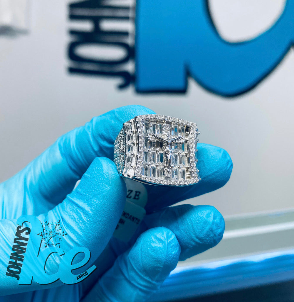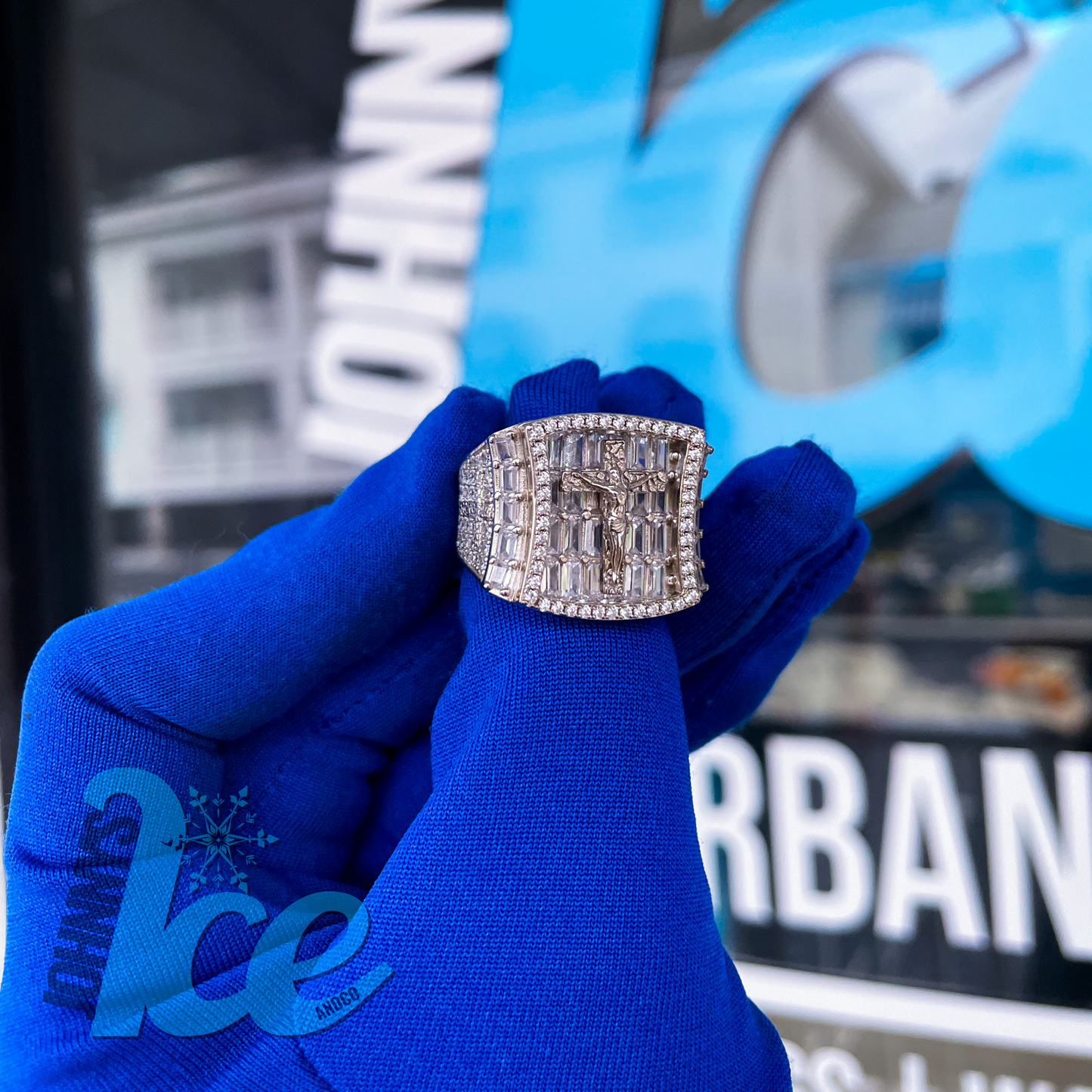 Hand-crafted, specialized Baguette Jesus Cross style ring from the jewelers @ JIAC.