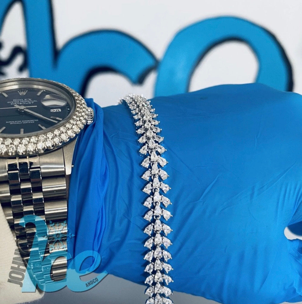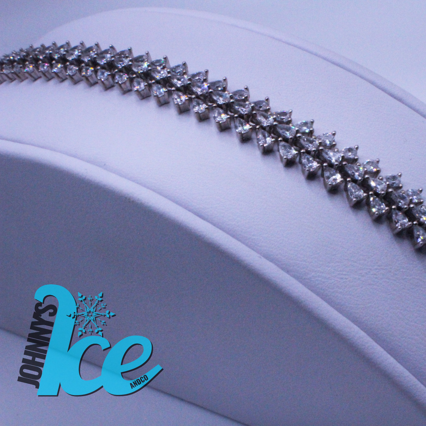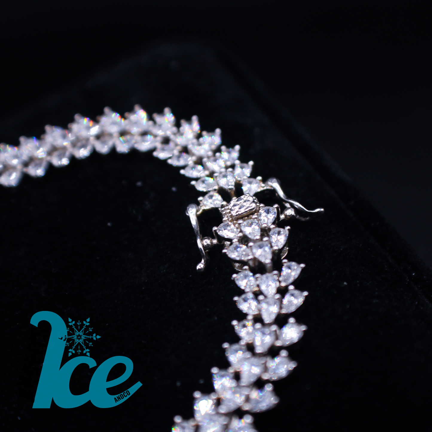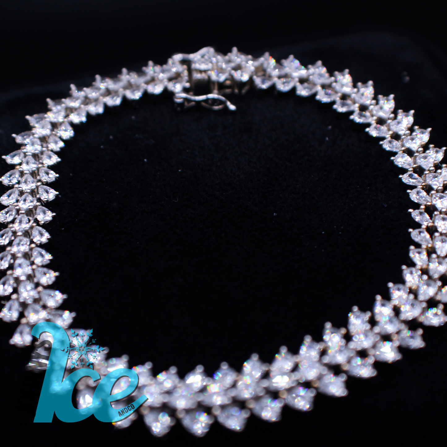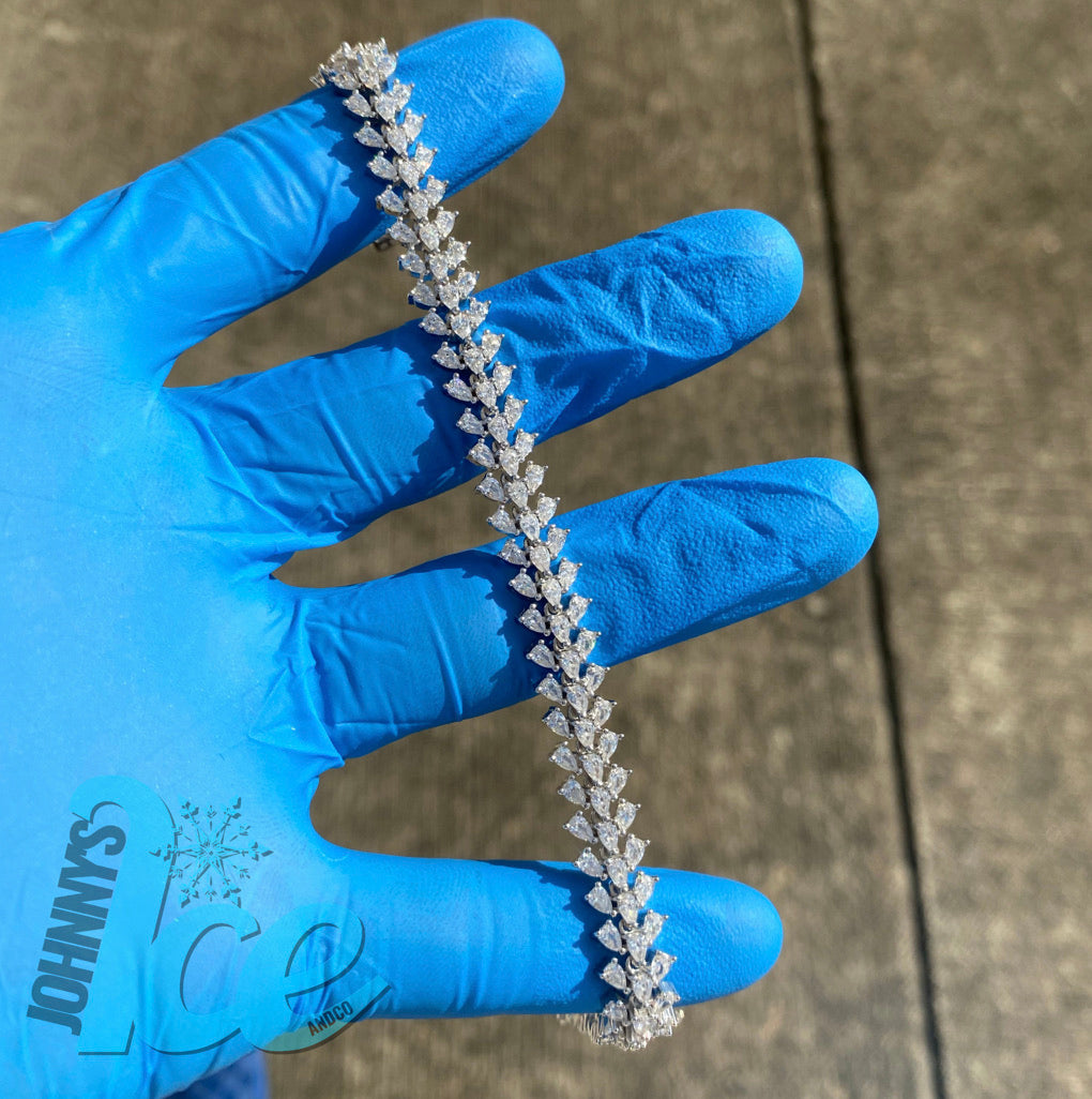 This one of a kind special custom Leaf Link was featured with princess cut and pear shaped diamonds. .925 Pure silver on CZ/Lab