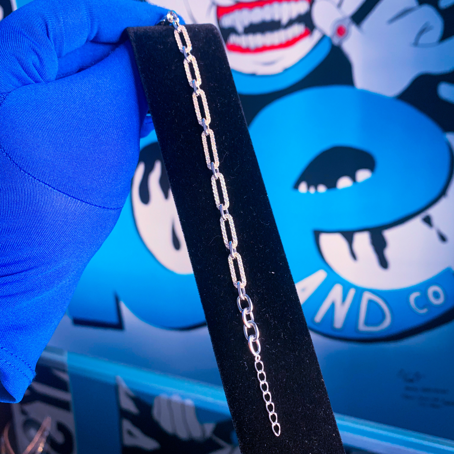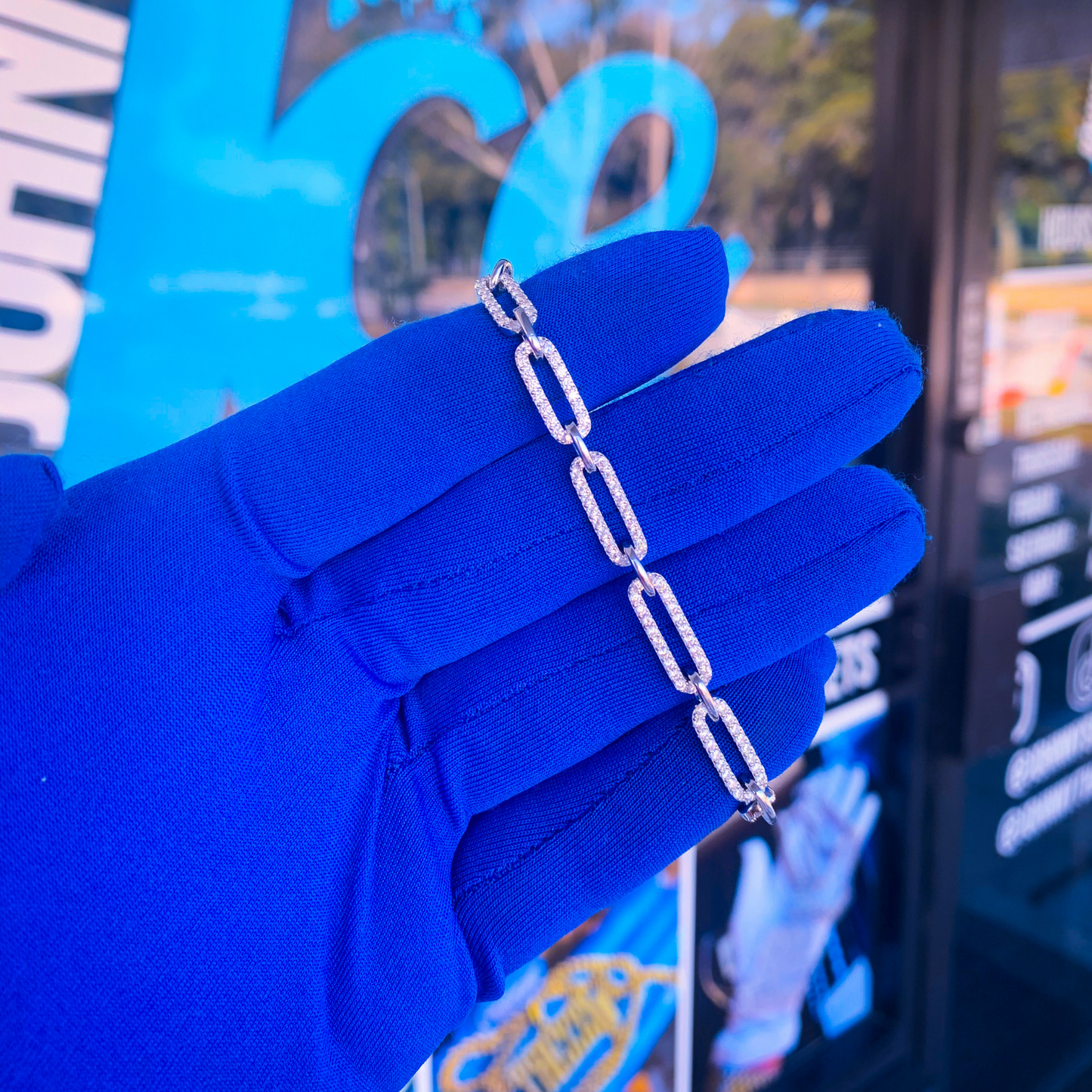 Regular price $450.00Part of our V-Day 2022 Collection features our 1 of 2 Diamond paper clip bracelet. Great thing about this unique design, each linkage is adjustable to fit the right sized wrist. Max sizing reaches at 8"