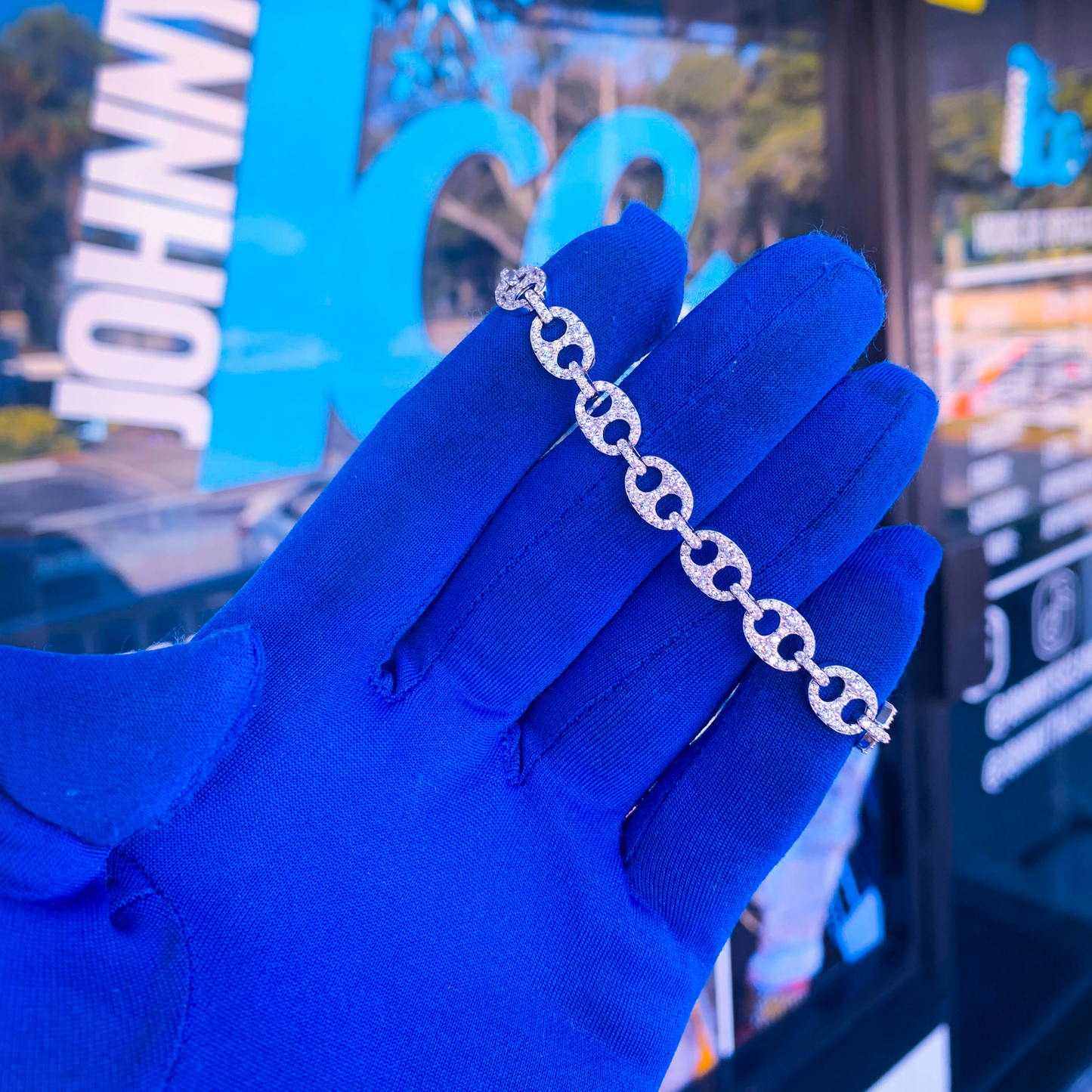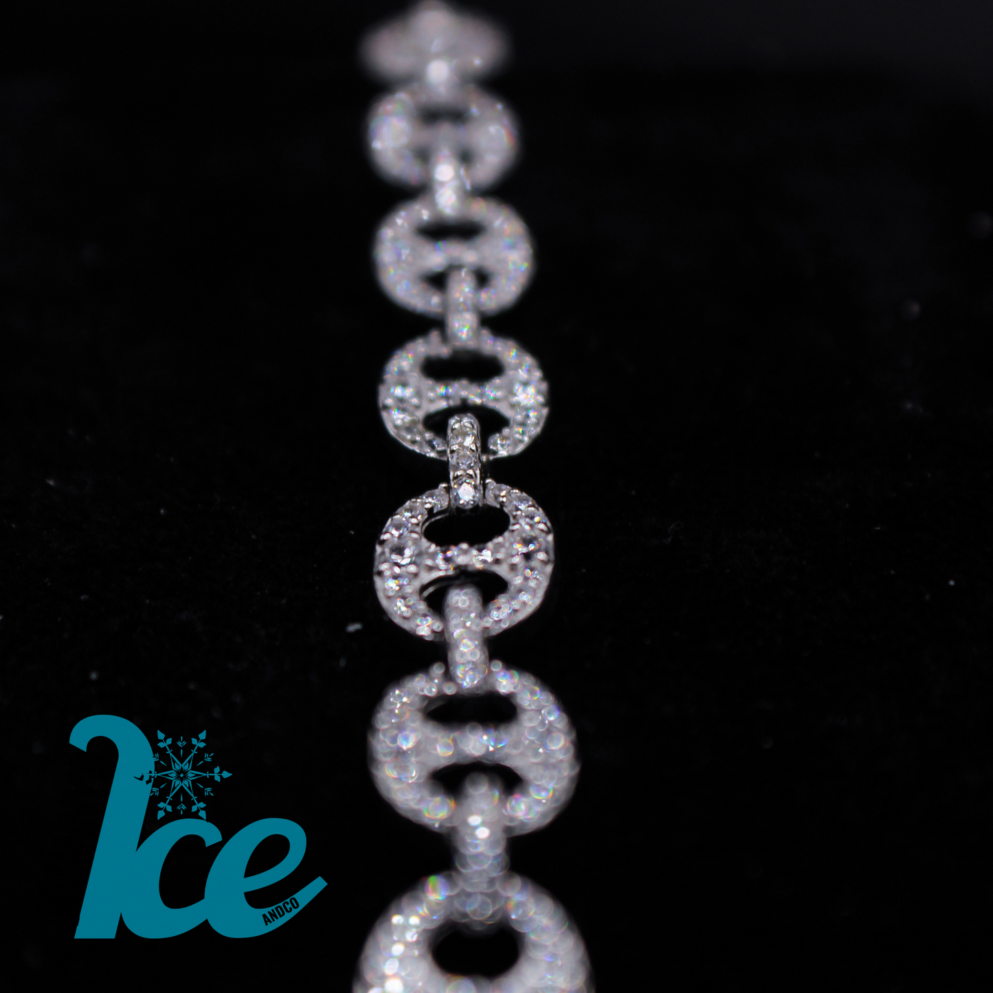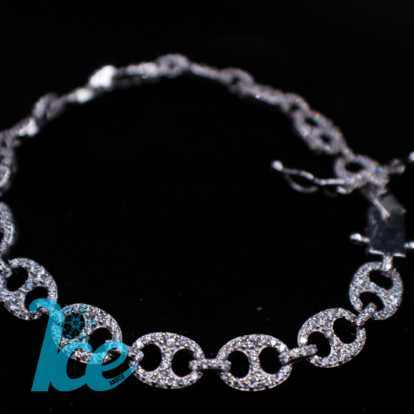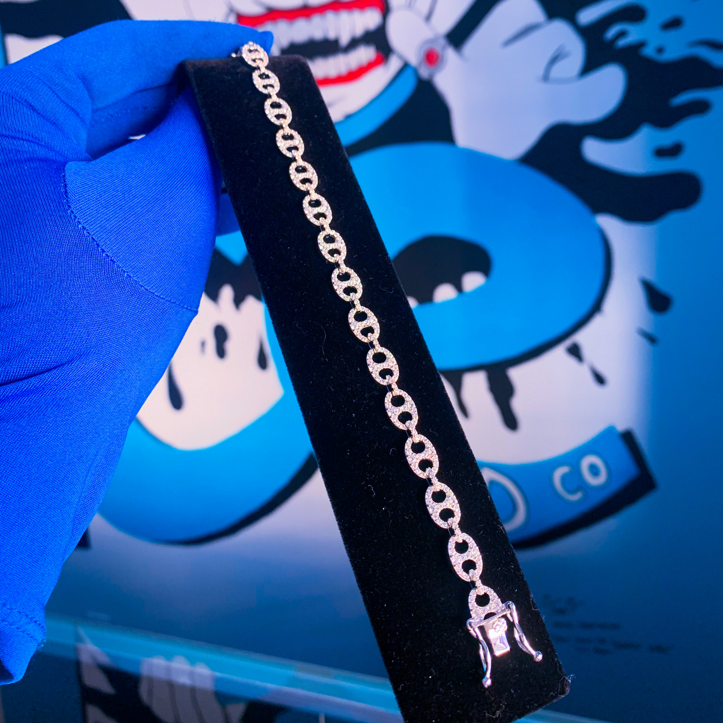 Part of our valetines day restock features our flat link gucci bean style bracelet. With no interferring links all specually single rowed set diamonds introduces a nice sublte shine. Not too flashy not too boring. Just right for the ladies.