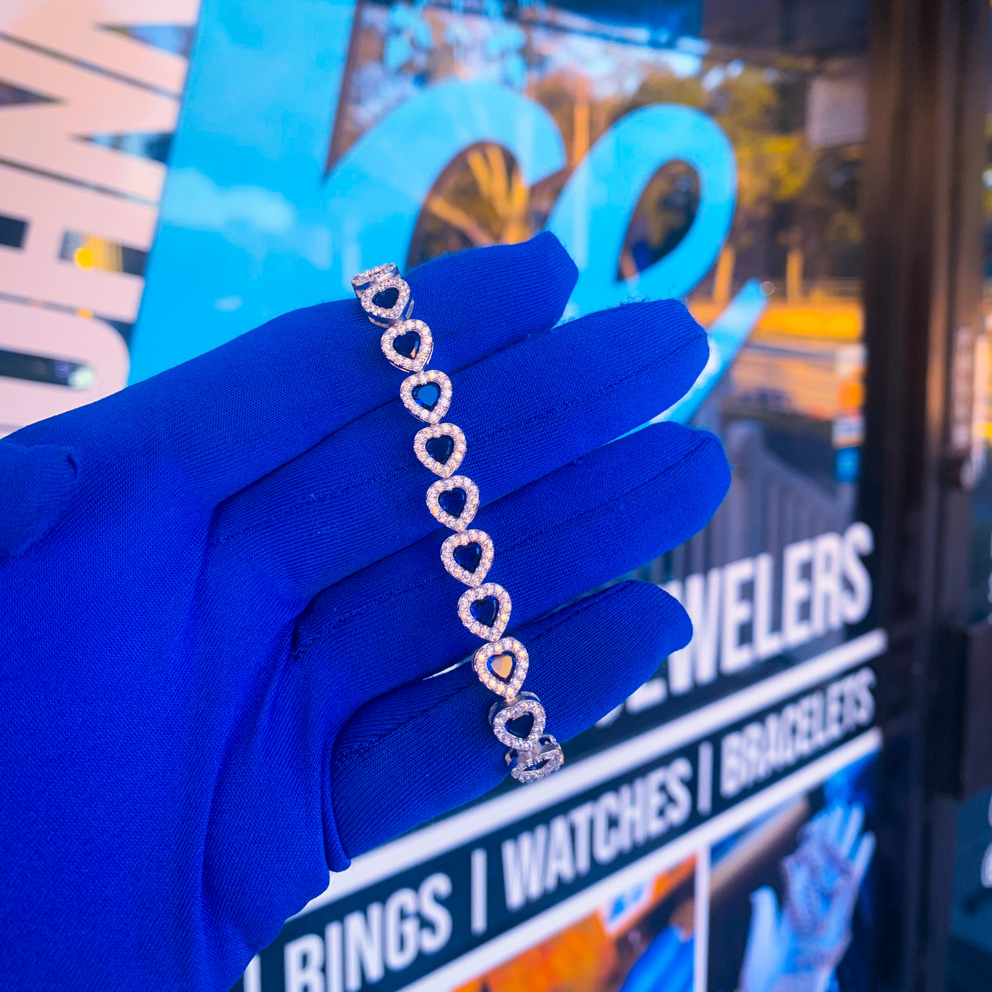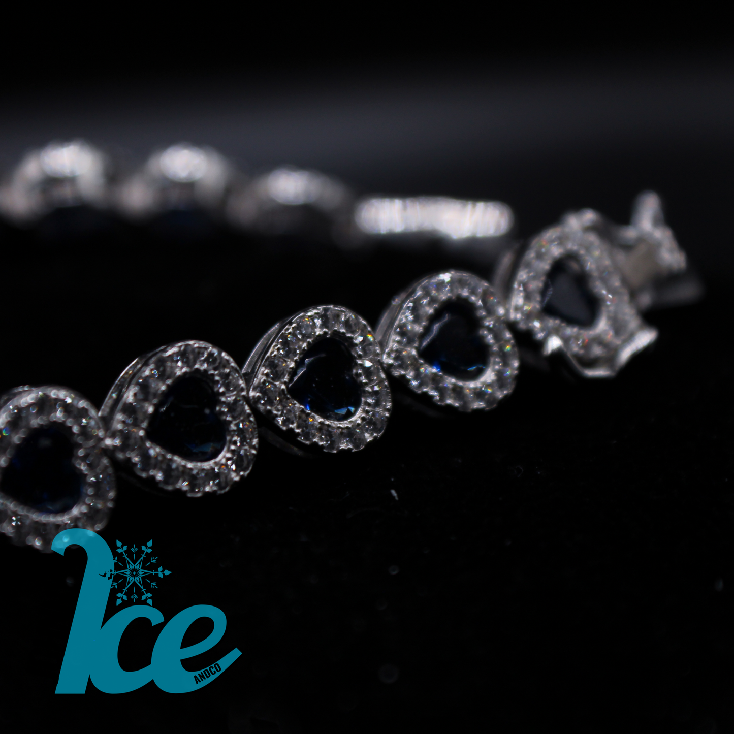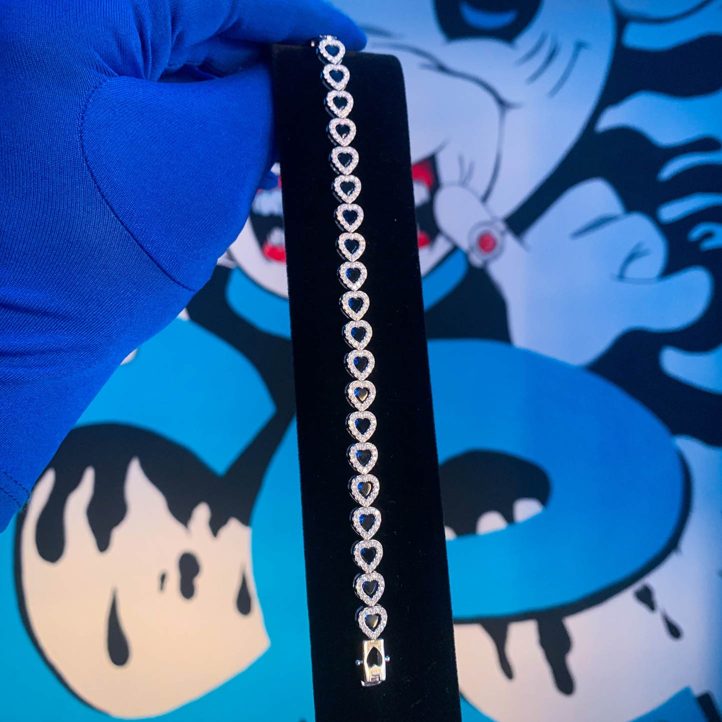 This uniquely crafted Heart Shaped Bracelet features .75 CT heart shaped sapphire main stones in EACH link. Surrounded by round cut clusters this bracelet is defiantly shining hard! Perfect for the ladies from our 2022 V-Day Collection.