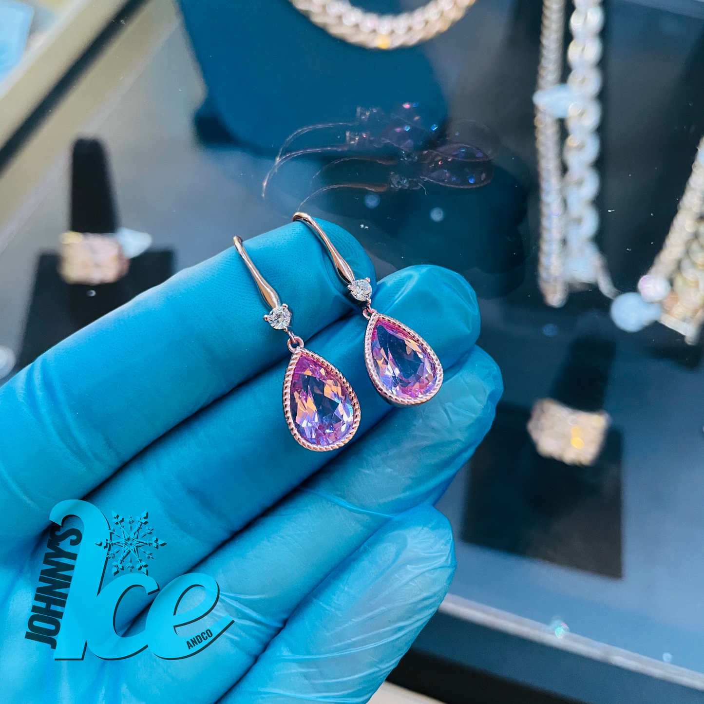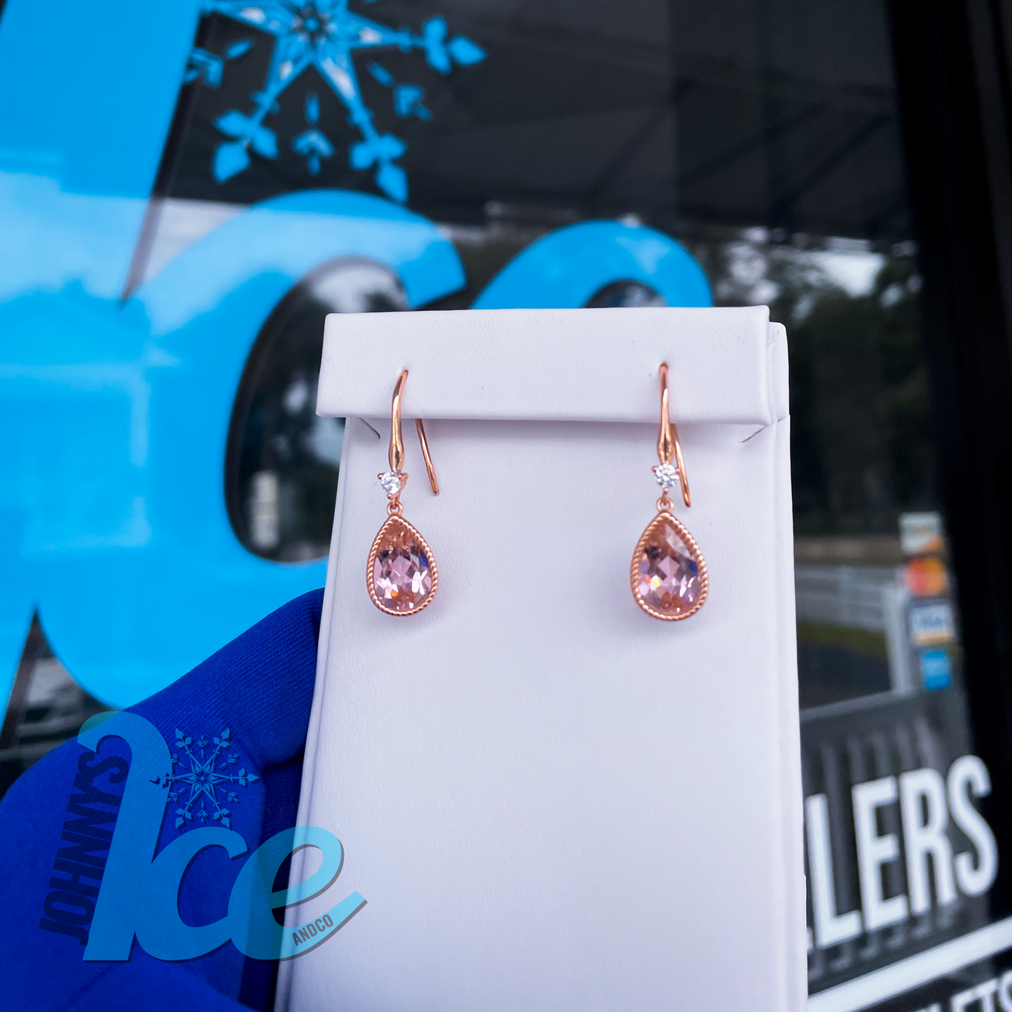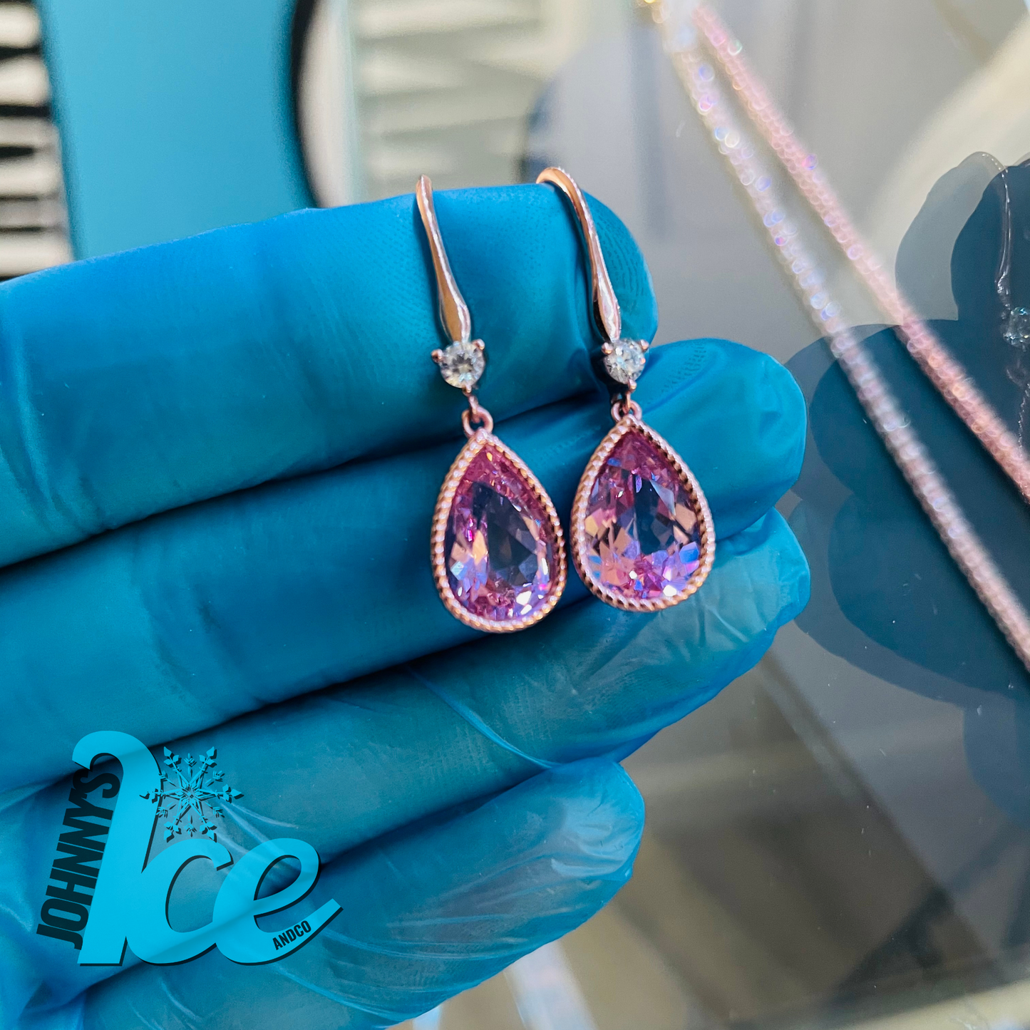 Handcrafted, premium Pink Sapphire Pear- Cut earrings made by our Johnny's Ice and Co. jewelers!