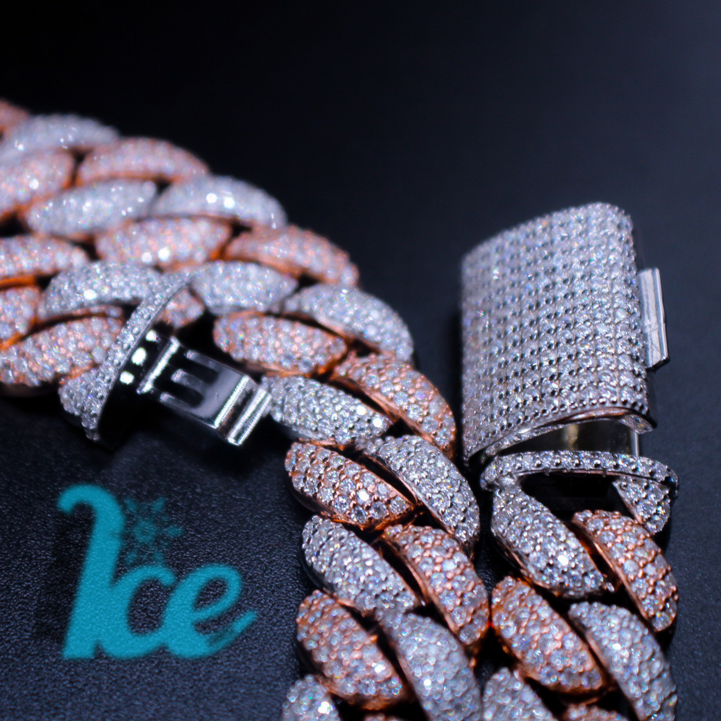Introducing our release of specially crafted hand set cubans of Winter 2022, featuring two tone features, with a special interlocking clasp buckle. Firm Linkage from our cubans insures tight and solid formation around the neck. No folding over or looking goofy out there!