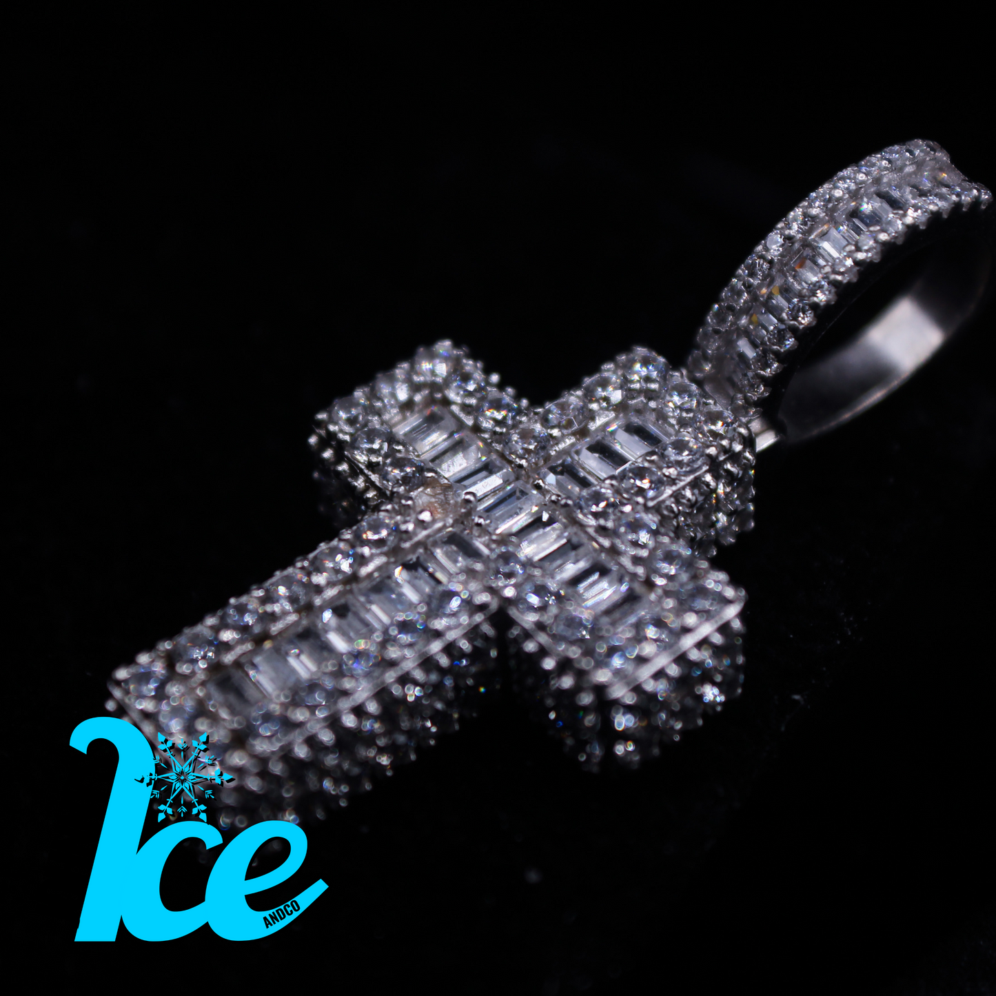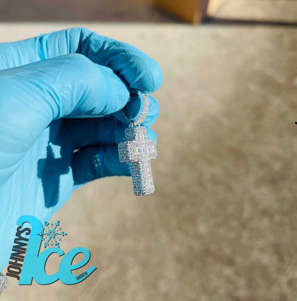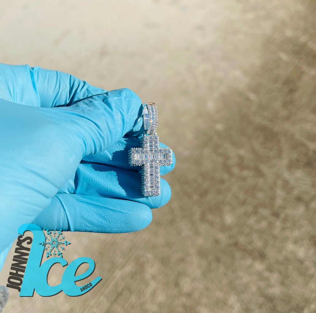 Regular price $500.00Specially Hand-crafted and one-of-kind-style Baguette Cross brought to you by our jewelers featuring 3 layer side diamonds and baguettes in the middle.
