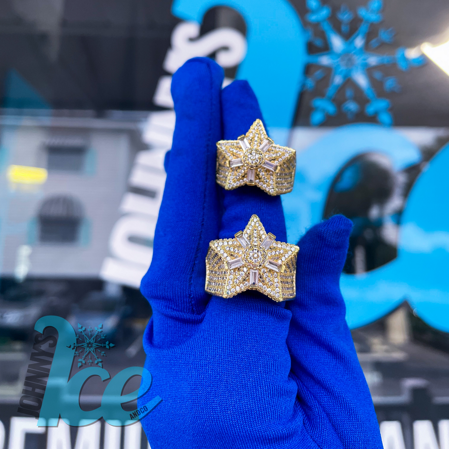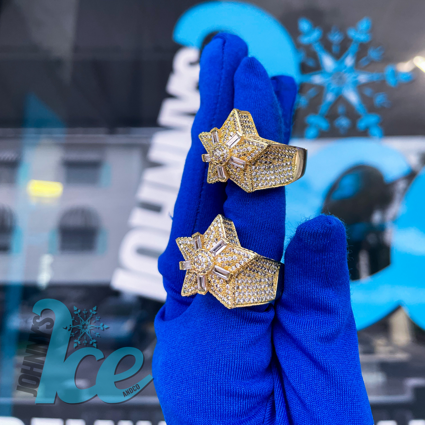 Specially Hand-crafted, .925 On 10k Yellow Finish Baguette Flower Ring designed by our jewelers @ JIAC.