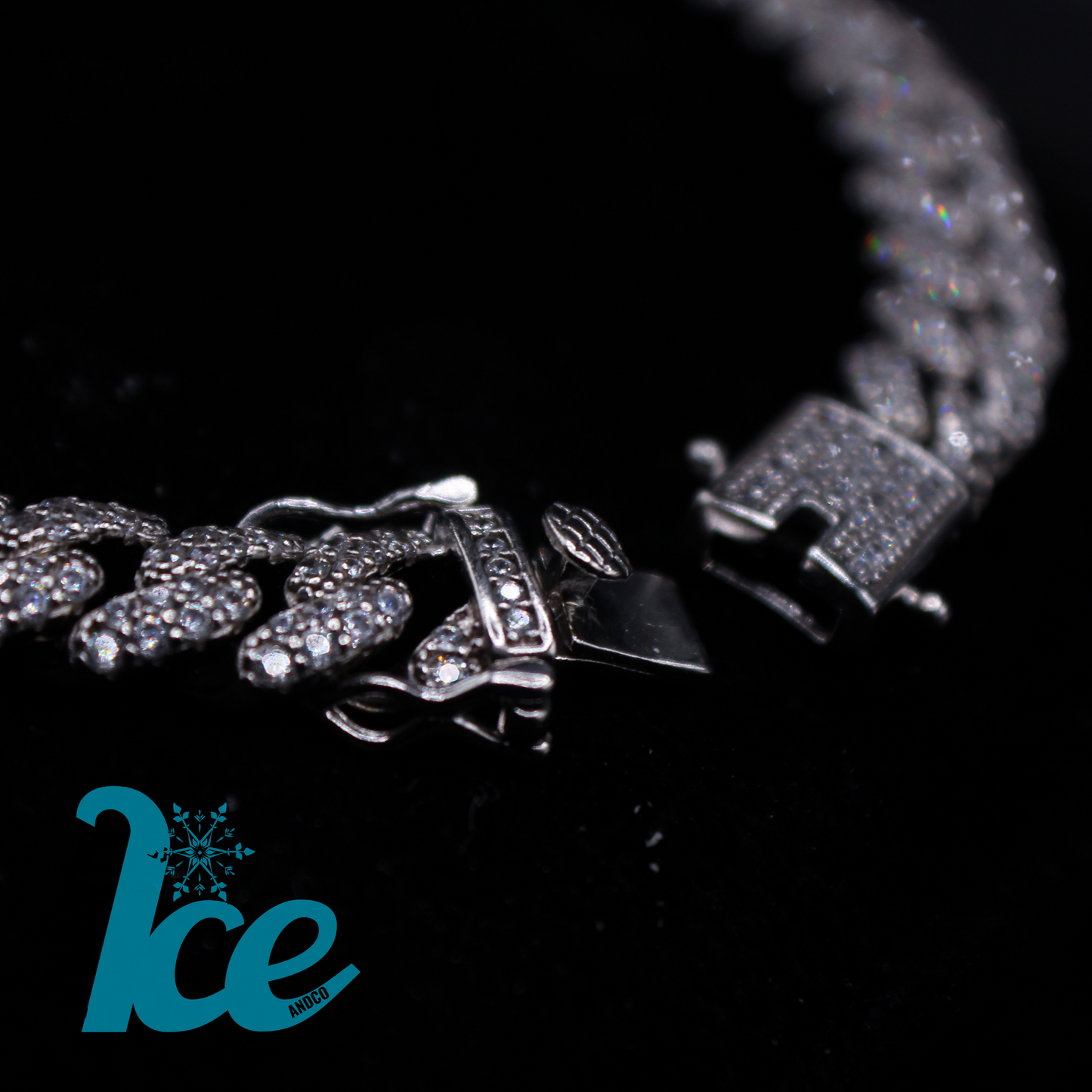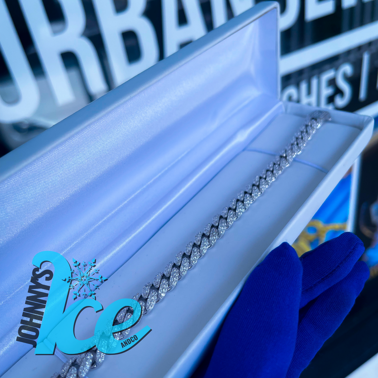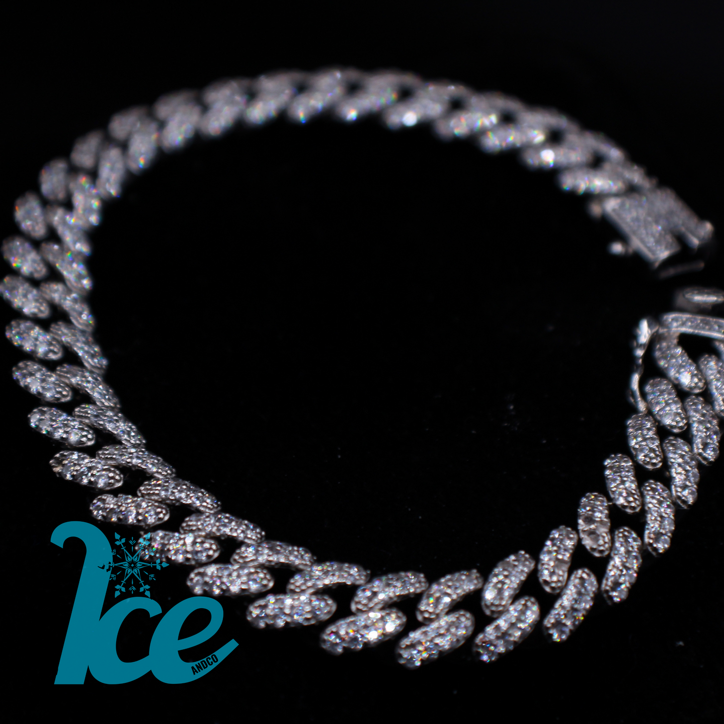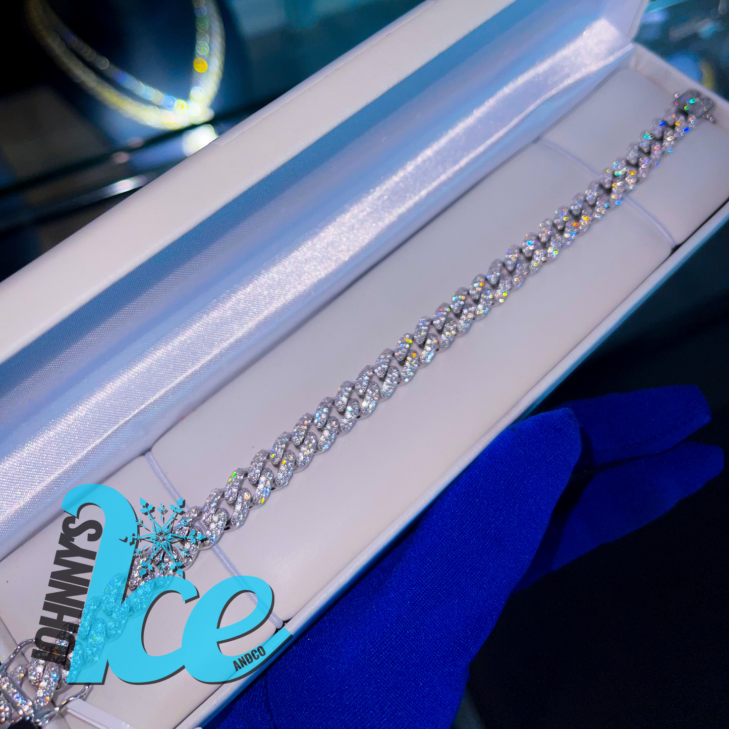 Our Original Traditional .925 Pure Silver Cuban Bracelet Set on 13.35 Cts of SI Labs.