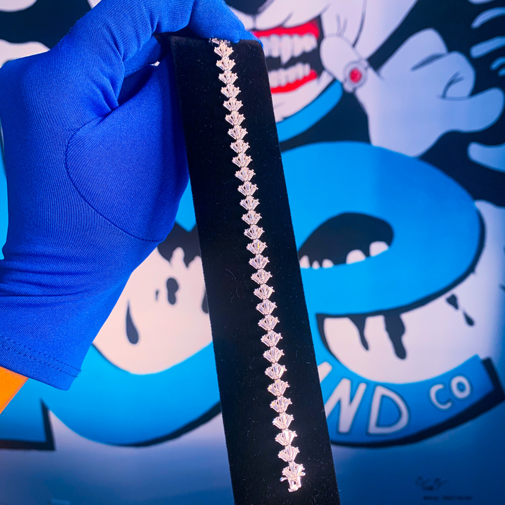 WOW! This one is different, bringing you our newly featured Baguette Bracelet but specially cut to fit into triangular links! Truly one of a kind