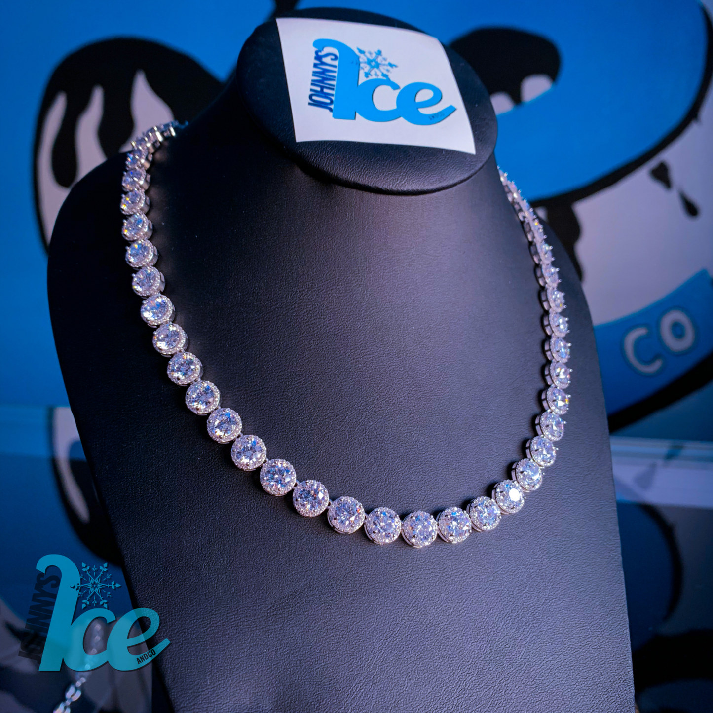 Regular price $250.00Bring our cluster Tennis Chain back to market but a different unique style. Featuring Big boy pointers in the middle of each link. Solid Backing to each link give this chain a unique first edition style.